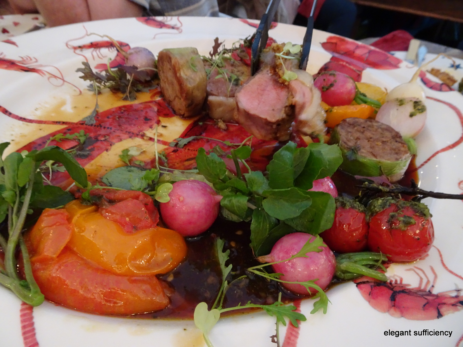The main course lamb was served with colourful vegetables too.