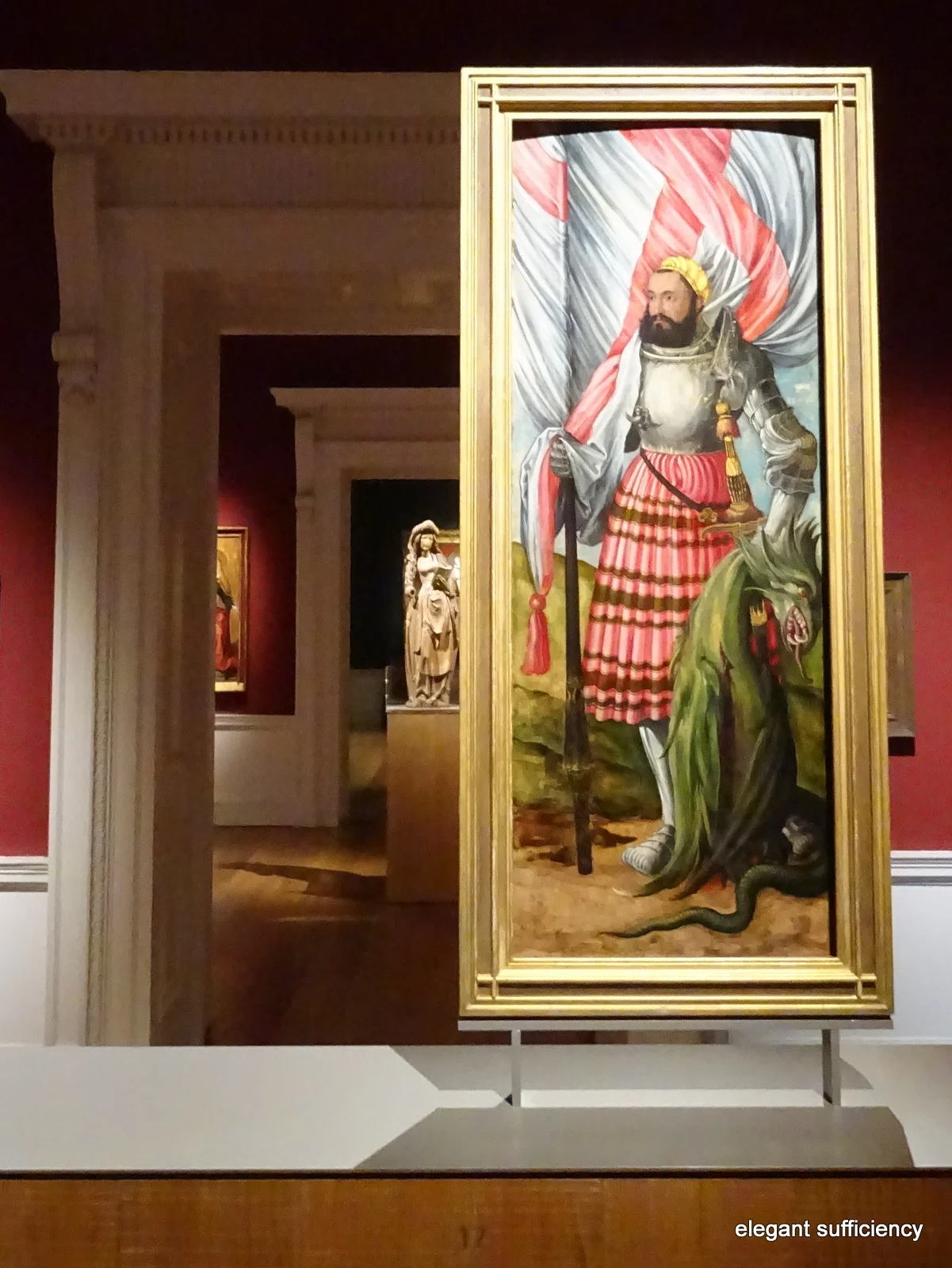 It involved a walk through the permanent exhibition downstairs, a gallery we frequently overlook when we're here, because it's kind of familiar and doesn't have the pulling power of the short-term, temporary exhibitions we usually come to see. When we do make our way down there though, the reward is immediate, for these galleries are so beautifully designed, each work of art effectively lit and shown to best advantage. Doesn't St George look great here, freestanding and not hung against a blank wall?