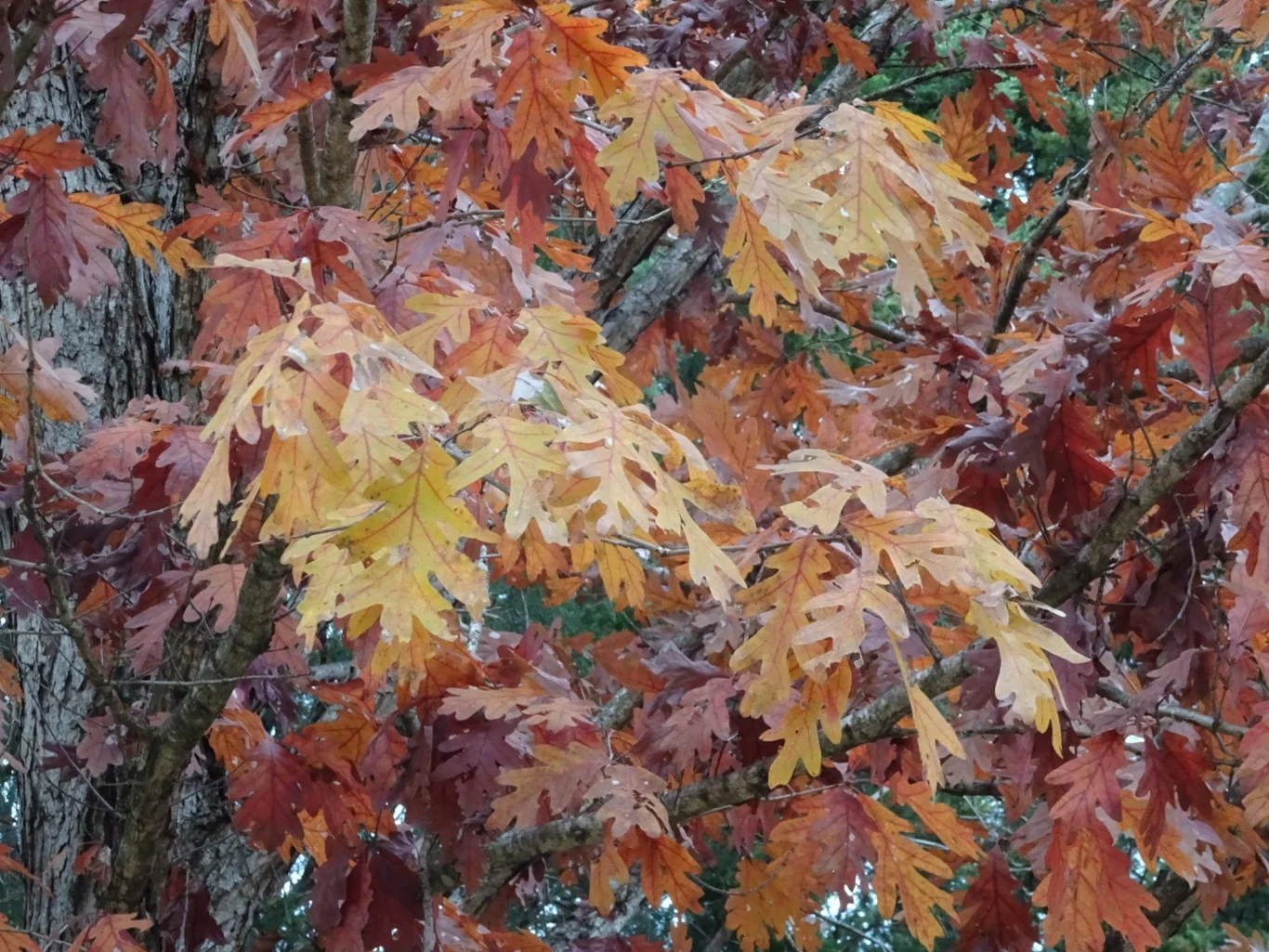 Walking back to the exhibition space, I couldn’t resist taking a photograph of these gorgeous oak leaves, still there on the trees when most of the others have fallen. The temperatures have dropped considerably today, there’s a stiff breeze and perhaps the leaves will not last much longer.