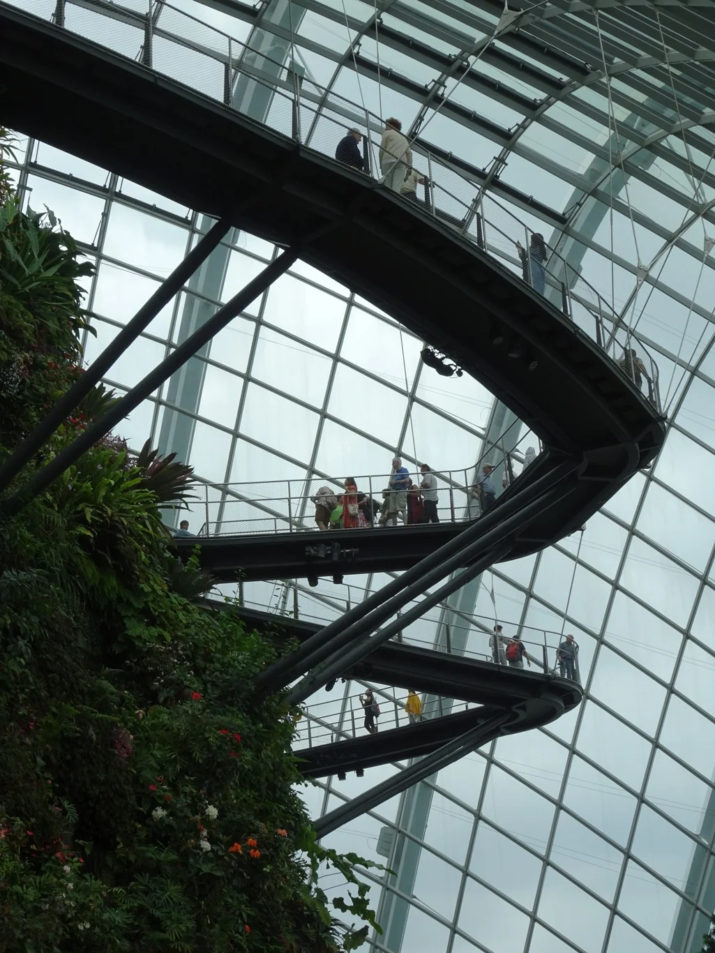 That was exactly what they did, leaving us behind a group in which one woman had read out loud the warning at the top of the walkway, advising anyone with a fear of heights to return to the ground floor by means of the lift. She wasn't good with heights at all, she said...and so the whole way down we heard "I can't do this", "ooooer, aaagh no, I can't look" and so on (and so on).
