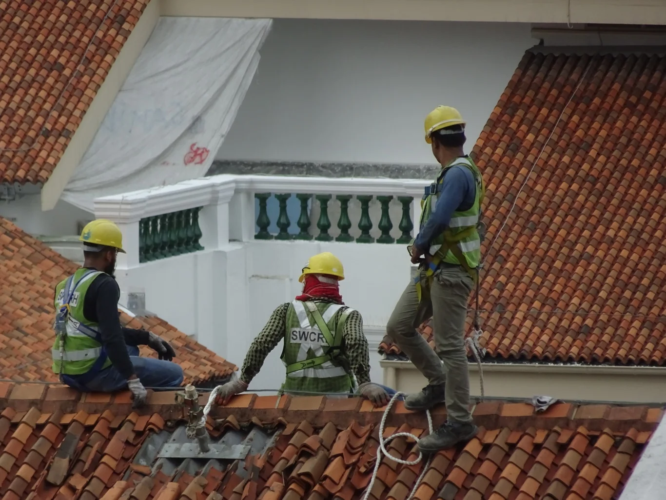 Errands completed and no new luggage bought (!) we returned to our room to put together a few things in preparation for our departure tomorrow. As I looked across the road, I spotted three workmen on the roof of the Raffles Hotel, currently undergoing renovations (and not before time, looking at the state of that roof!) They were walking about comfortably on the ridge, chatting and taking it easy. I couldn't but help think of the woman on the elevated walkway this morning!
