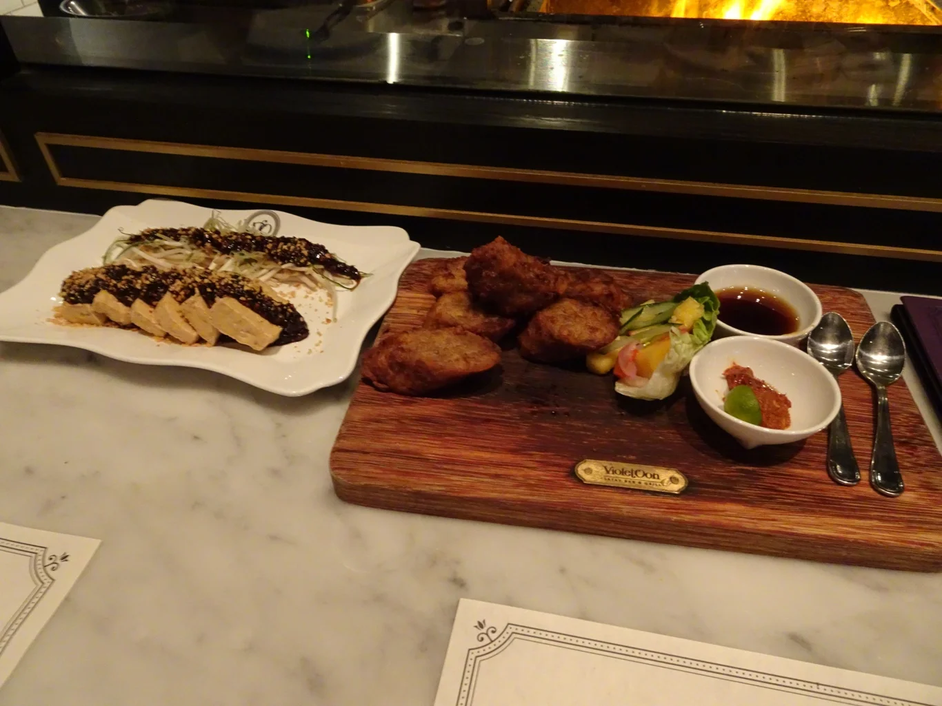 Another plate of absolutely yummy food arrived, which we polished off in no time, prompting the question "did you enjoy that?" from one of the wait staff who we'd chatted to earlier. "Maybe you'd like to meet the lady herself, then" at which point, we turned around to see a smiling lady dressed in chef's clothes there behind us - none other than Violet Oon herself. Utterly charming and clearly proud of her restaurant and staff, we chatted a while about food, Singapore and the Cotswolds, which she'd visited recently. We exchanged email addresses and off she went, recommending a particular dessert as she did (the one we hadn't ordered!) Later, as we paid the bill, the restaurant manager explained that our desserts had been offered with the compliments of Violet.