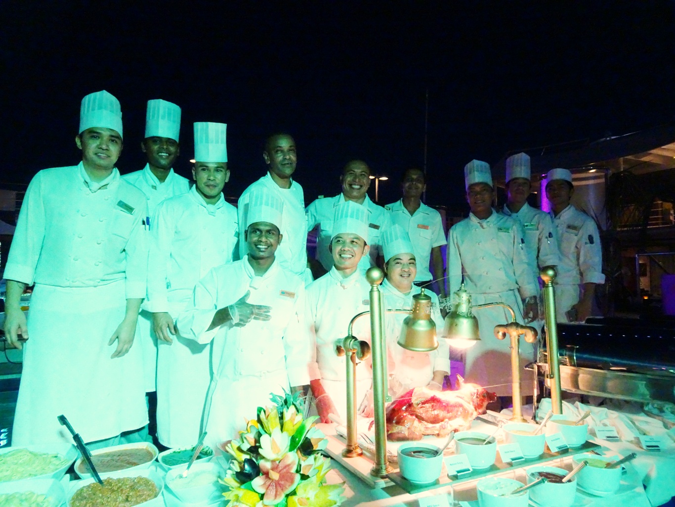 The stars of the evening were undoubtedly Chef Michael and his galley team, however. We don't often have the chance to thank them personally for their great work and to express our appreciation beyond sending clean plates back, so when they gathered together for a photo there was a spontaneous round of applause.