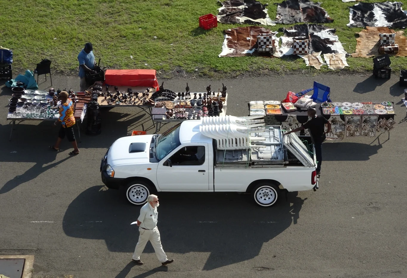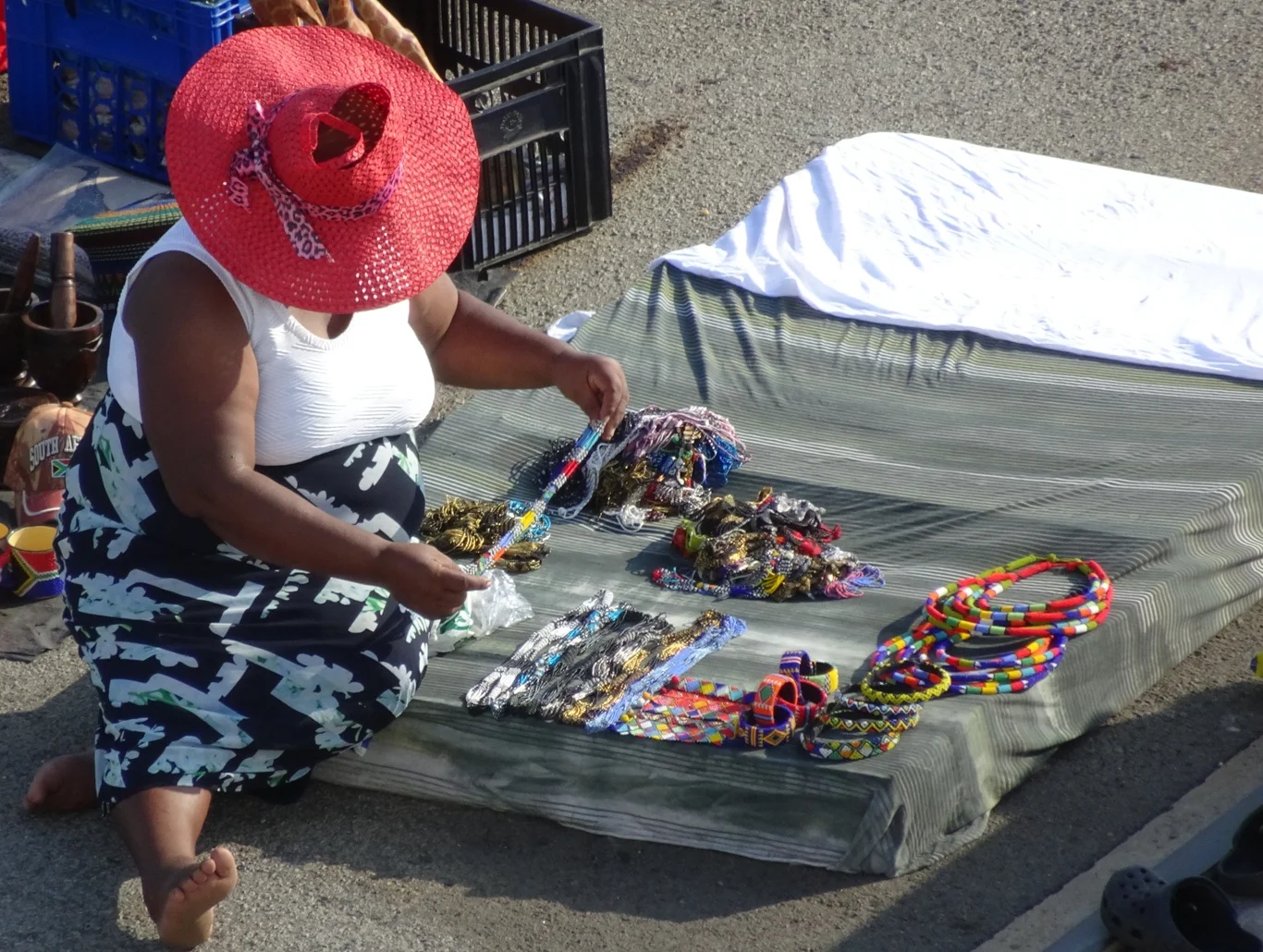 I watched one lady carefully arrange her jewellery on a cloth-covered wooden pallet, sensibly wearing a hat in the already hot sunshine.