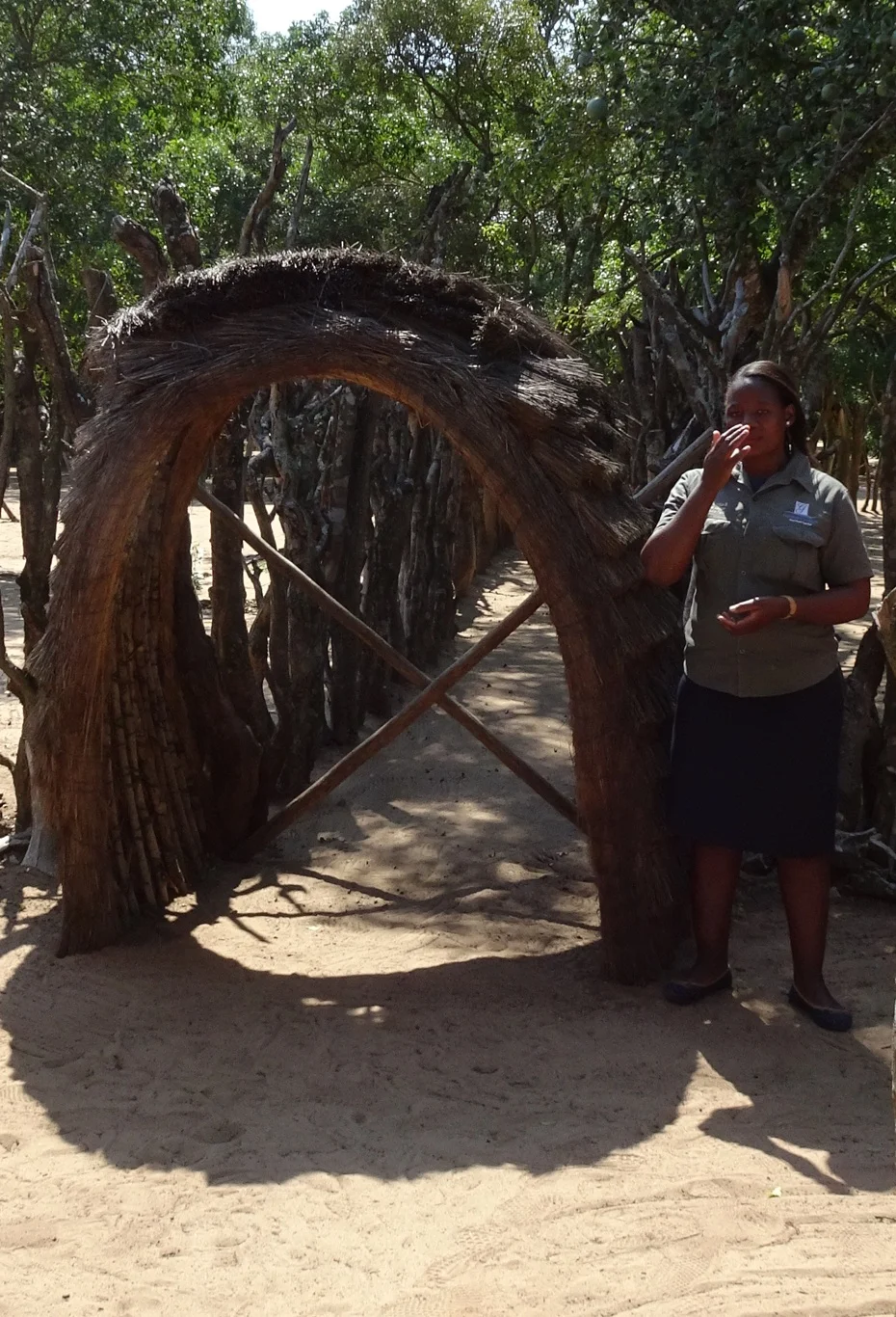 Having introduced ourselves and announced our presence by beating a drum, we were invited into the village. But the gateway was closed...we had to shout a few more (different) words of greeting and then someone kindly came and allowed us inside.
