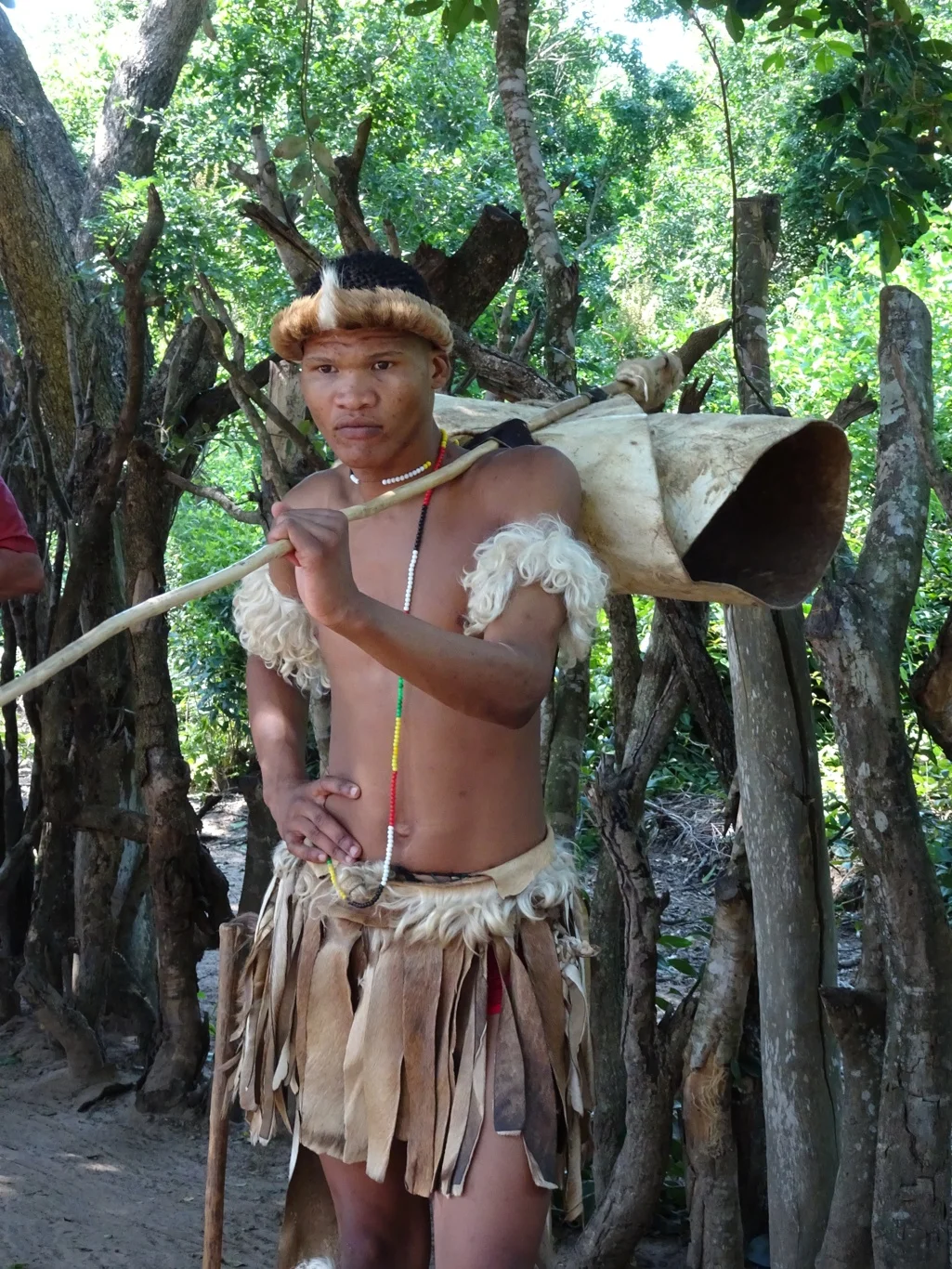 As we neared the cultural centre, Bongy also taught us a few words of Zulu which was just as well, for as we got off the coach, we were greeted by a (not very fierce) warrior who was keen to test each of us with a greeting.