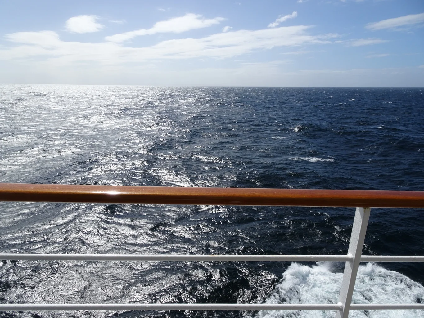 At lunchtime, the Captain reported an increasing swell of 15ft and a wind speed of 35mph from our port side, resulting in a rather rocky ride this afternoon. We are fine but the ship is quieter than usual as a result.