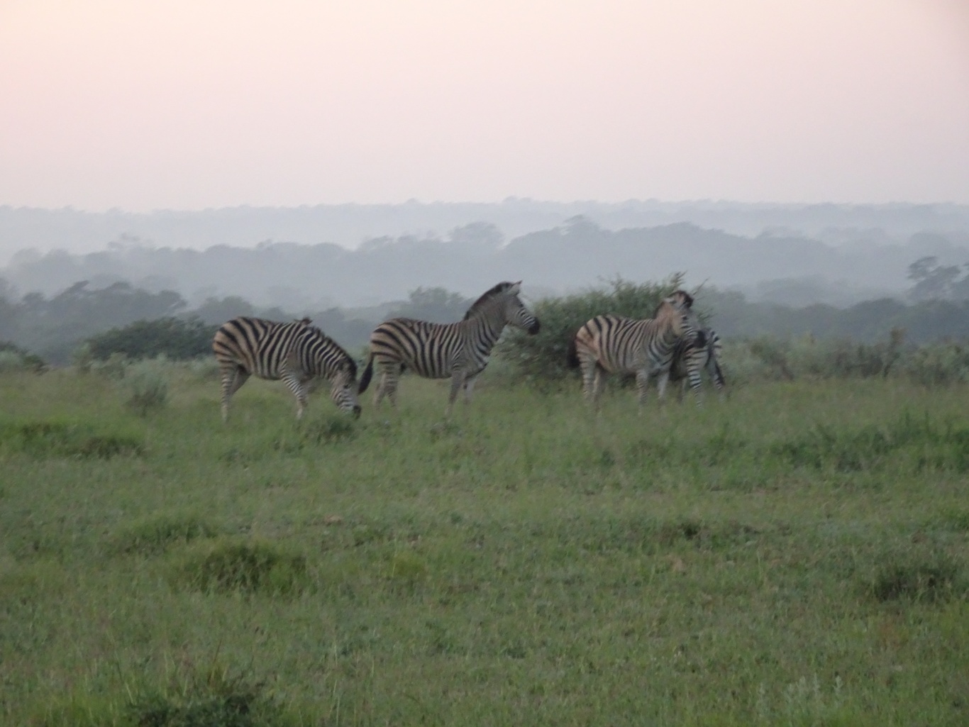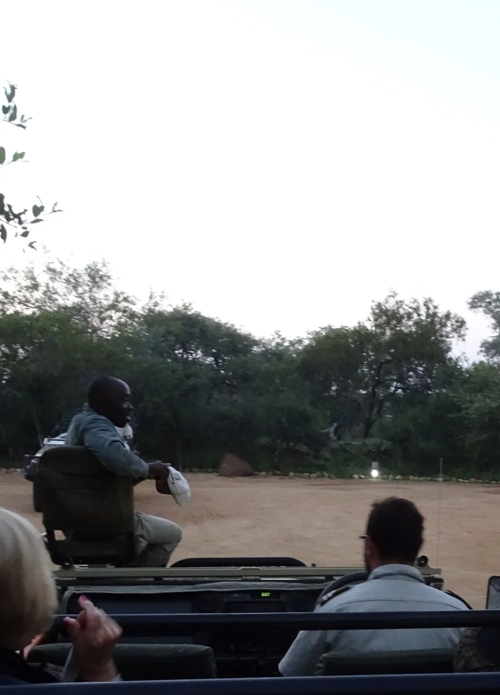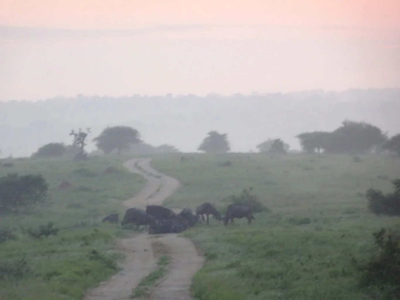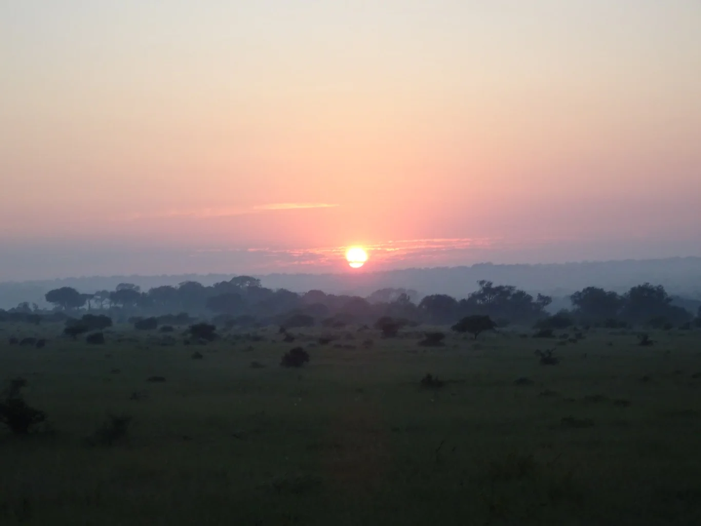 This morning, Jacob tells us that we're going to drive out onto the plains, to view the animals who graze there at this time of the day. Before long, we stop to admire the sunrise.