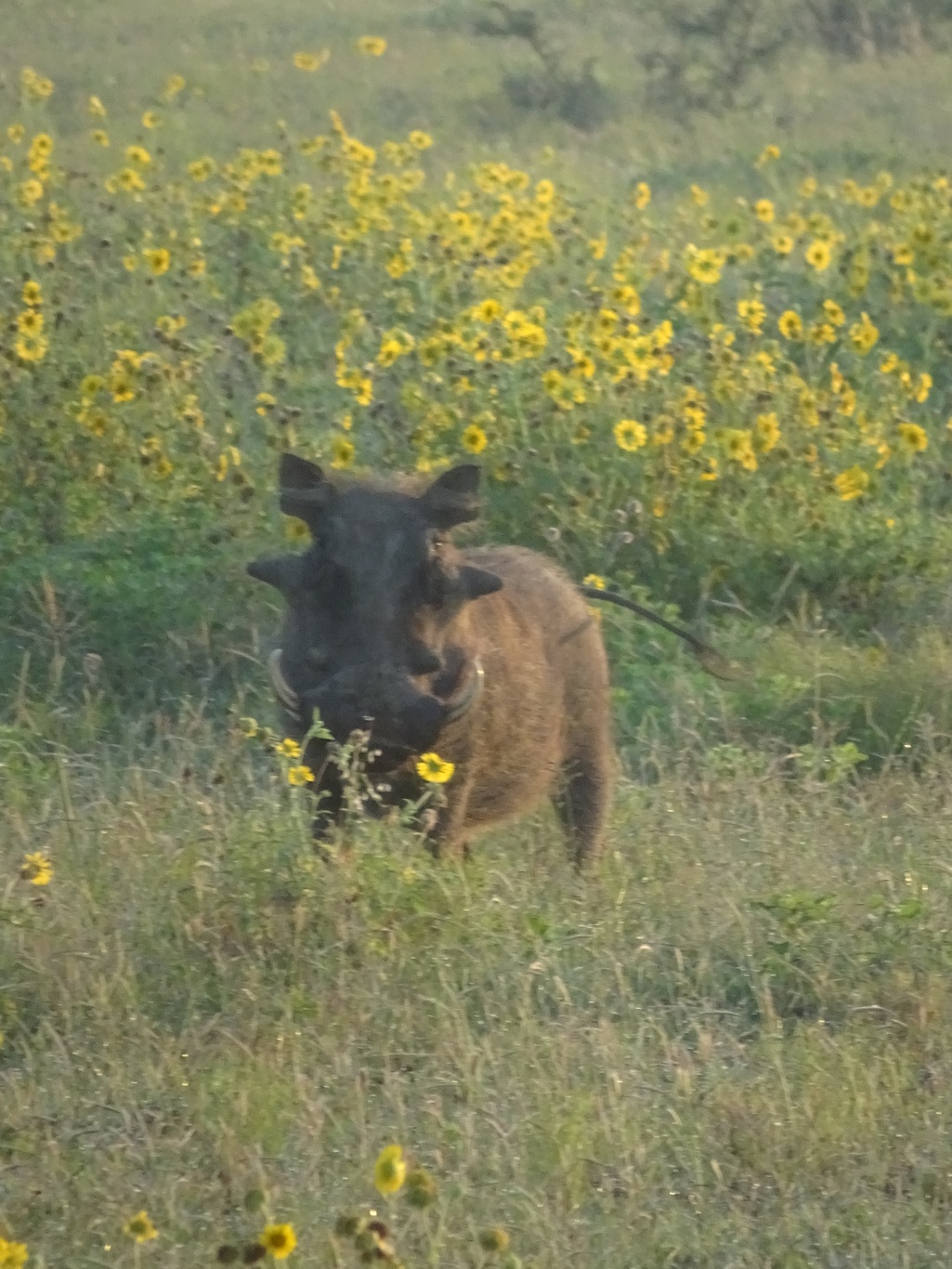 I liked the way the rather less than beautiful warthog stood in a patch of flowers for his photograph!