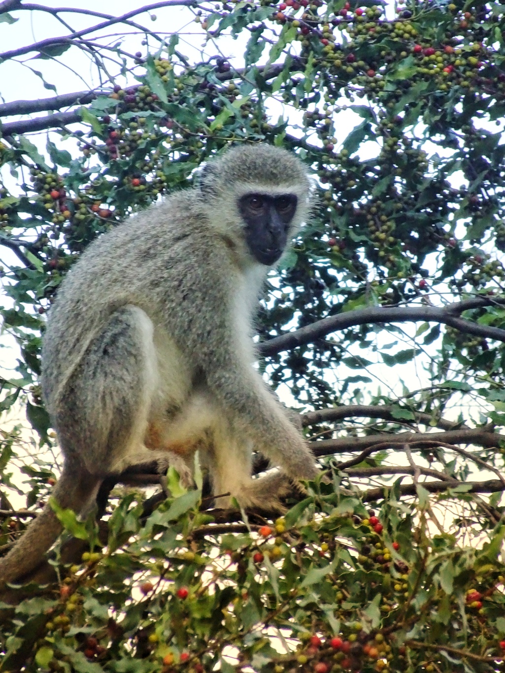 Around the next corner, we heard a rustling in the trees and looked up. A bunch of small grey monkeys were darting about, swinging in the branches above our heads and it took a while before one stopped for long enough for me to get his photo.