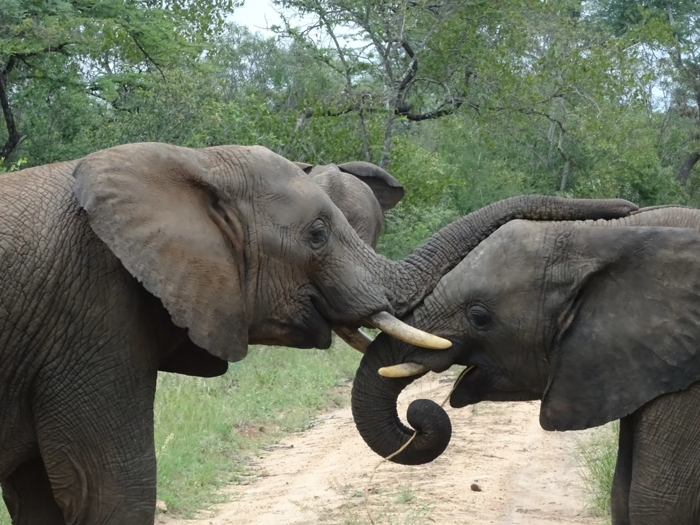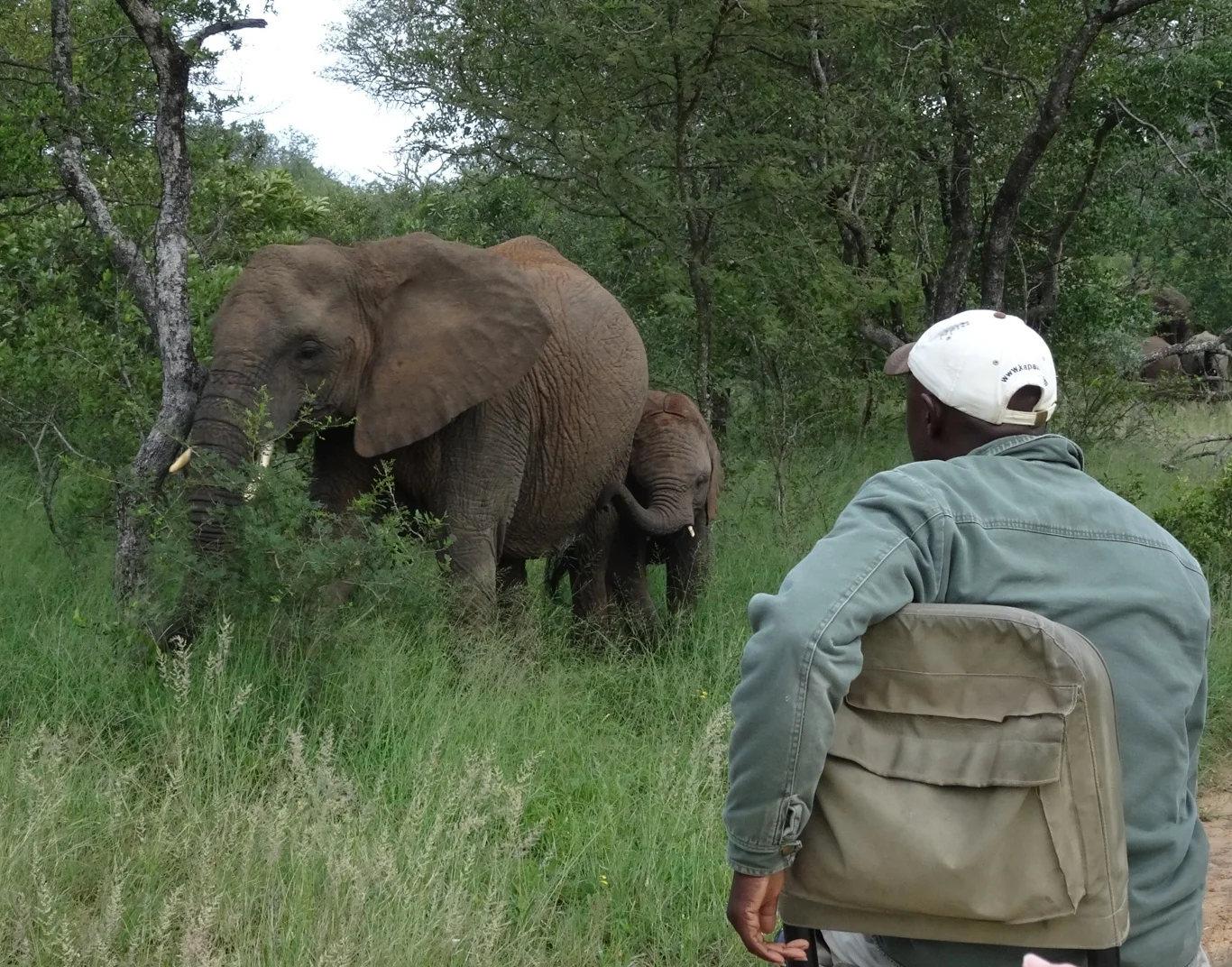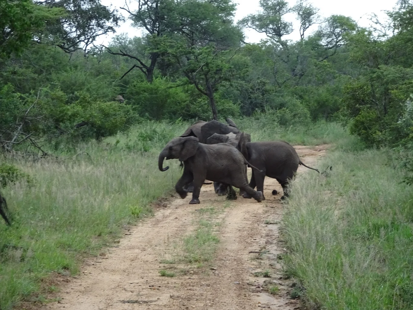 Just as we were beginning to feel a little despondent, all thoughts of rhinos were forgotten, because right there ahead of us on the track was a herd of elephants.