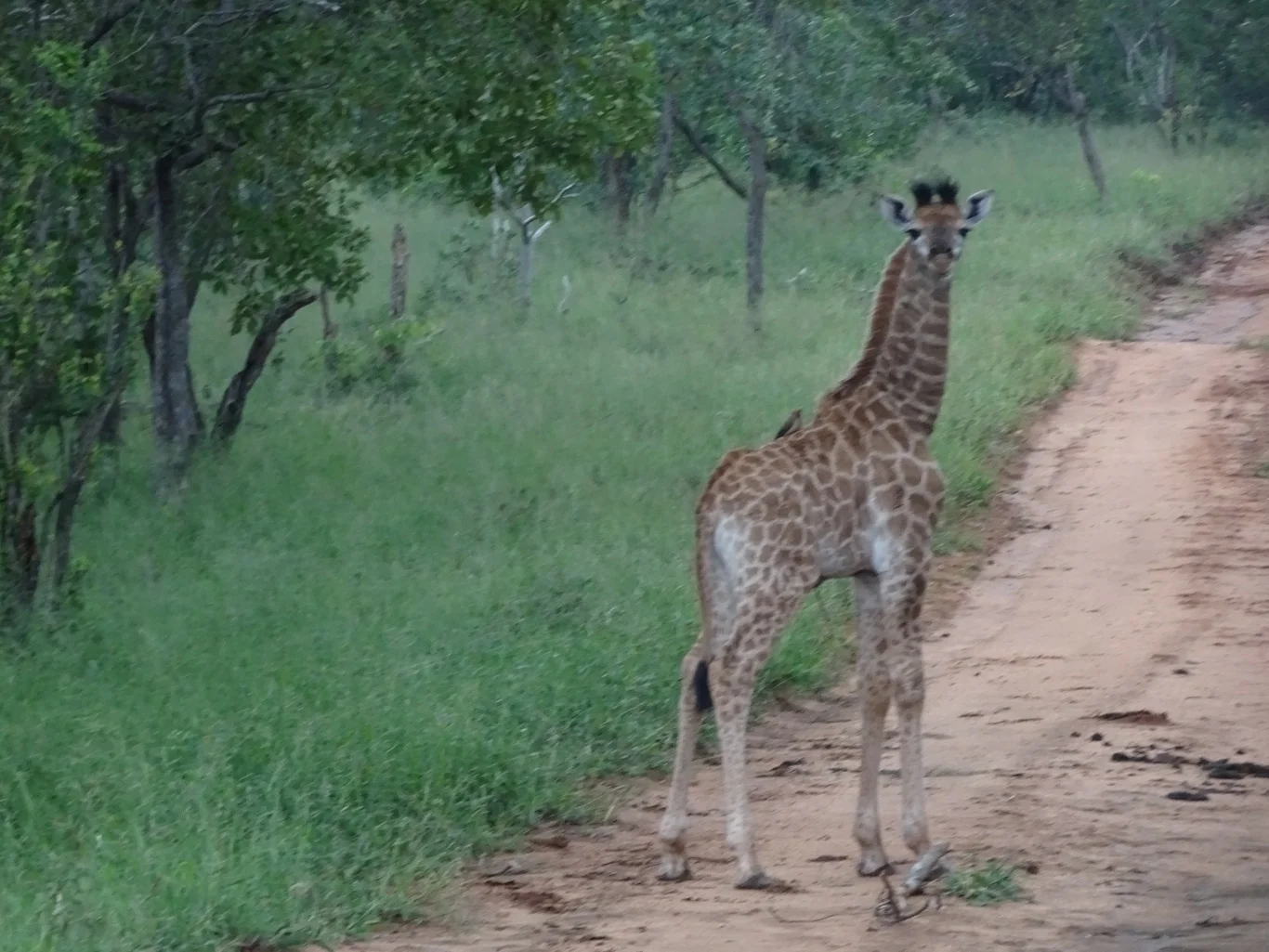 Sadly it was not to be. We did have a stroke of luck, however, because there in front of us was the tiniest of giraffes, born just yesterday.