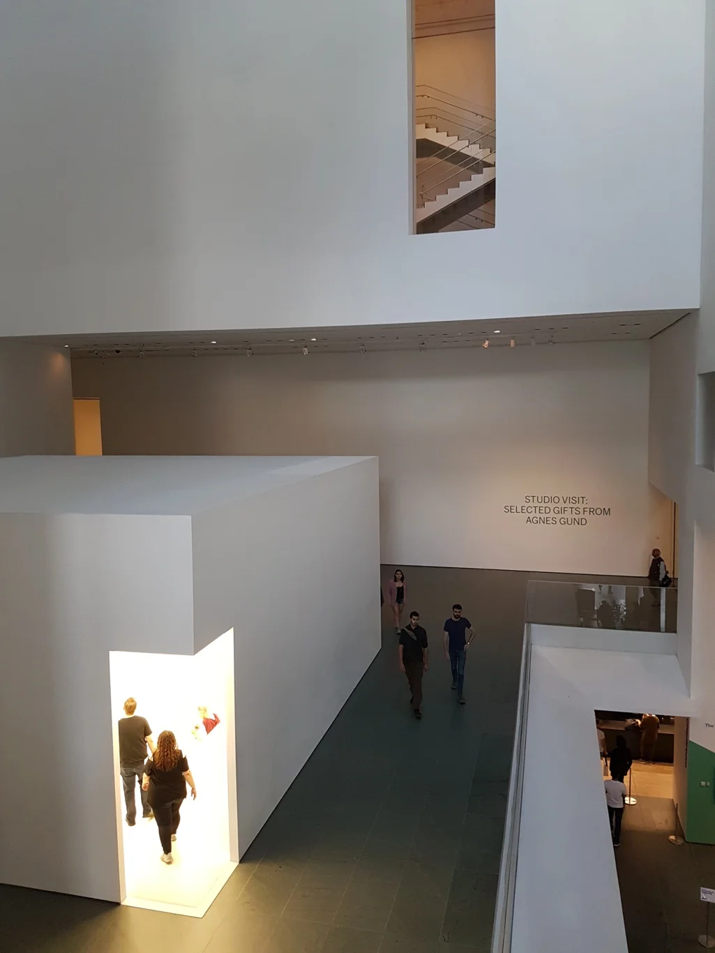 bBeing with like minded friends means that we all stop at the same point and take the same picture. Not of the works in the exhibition, but the architecture of the building which creates these little vantage points with spots of interest. Love the staircase up there and the bright spot of light in the room below. Later, we popped in there to see what was going on but found the light so intense that it felt really uncomfortable in contrast to the subdued lighting elsewhere. Interesting.