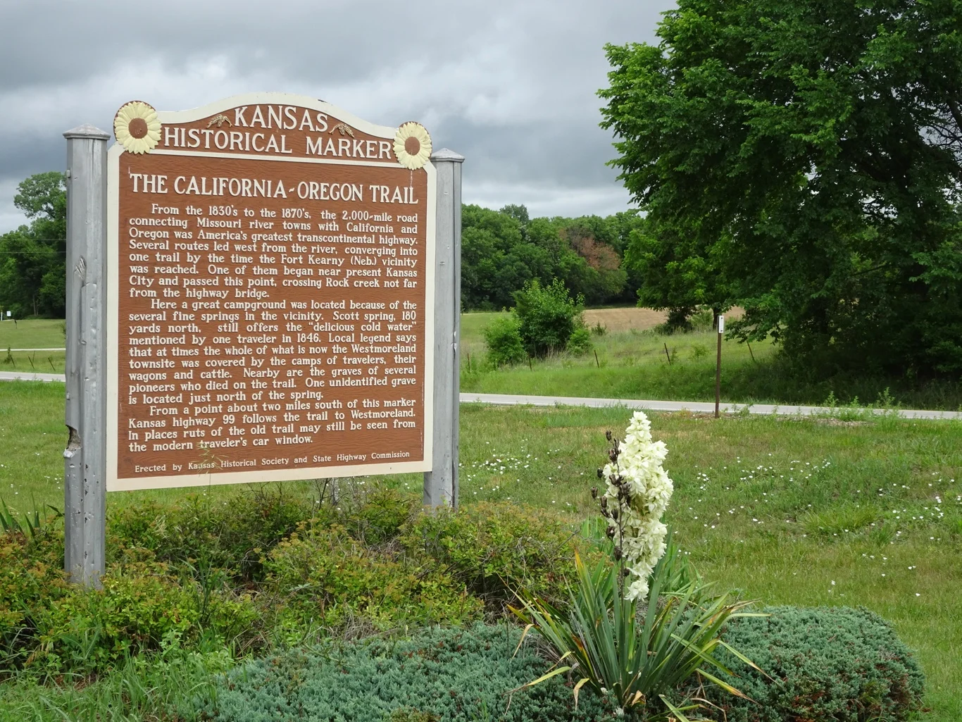 We had a list of Oregon Trail spots along the way but were surprised when a signpost announced "Historical Marker" a mile or so ahead of this one, giving us cause to make a surprise left turn into a layby to read this marker. Thankfully, my hero is adept at swerving at unexpected signals prompted by barn quilts, trail markers and assorted shop signs. (He also swerves for railroad attractions, just to balance the score)