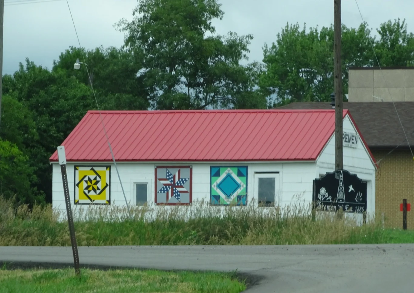 We were heading for the Hollenburg Station near Hanover and followed our satnav's instructions to turn left in Bremen - yes, this area was settled by German people! I snapped the barn quilts on the side of this building on the corner and made a mental note to keep an eye out for more!