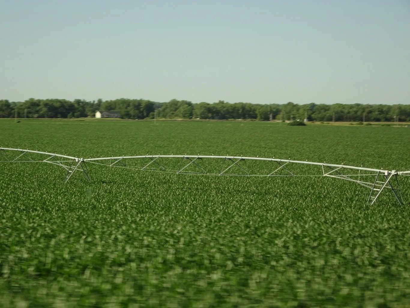 We were driving through the familiar cornfields we've become used to, with the irrigation rigs in every one.