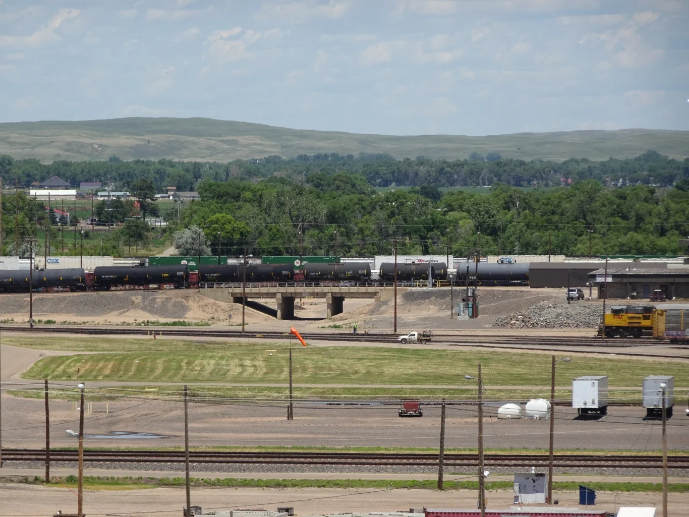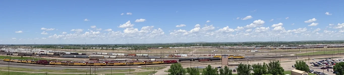 With the Nebraska Sandhills in the distance, there was one of the "humps", used to sort out the wagons for a variety of destinations. We spent a while watching the released wagons roll freely downhill one by one, before noting the time!