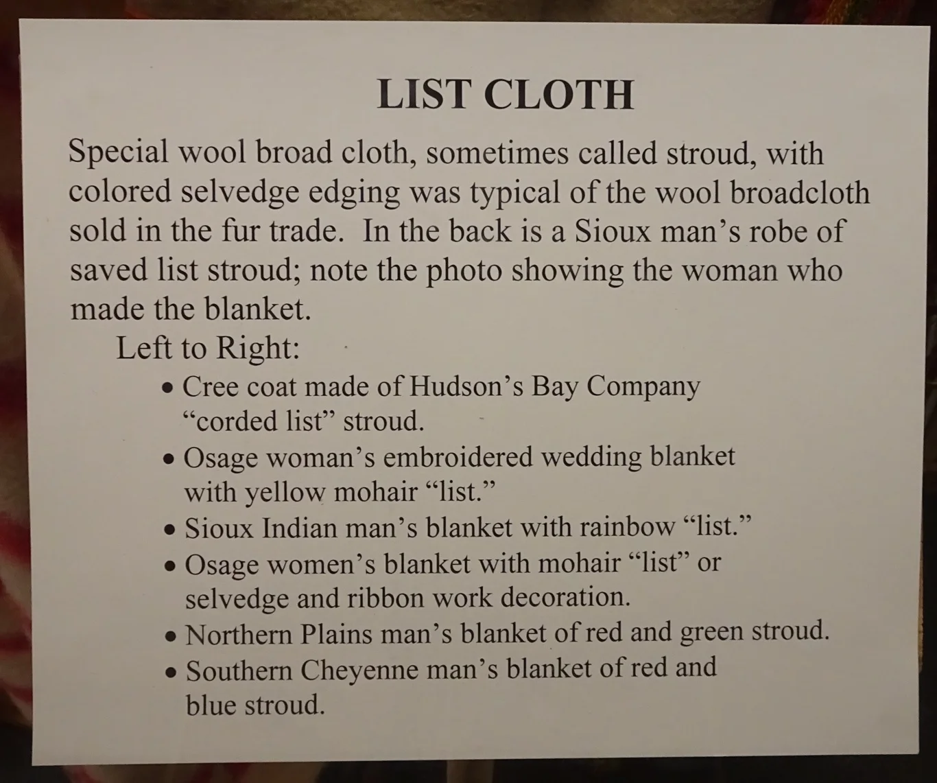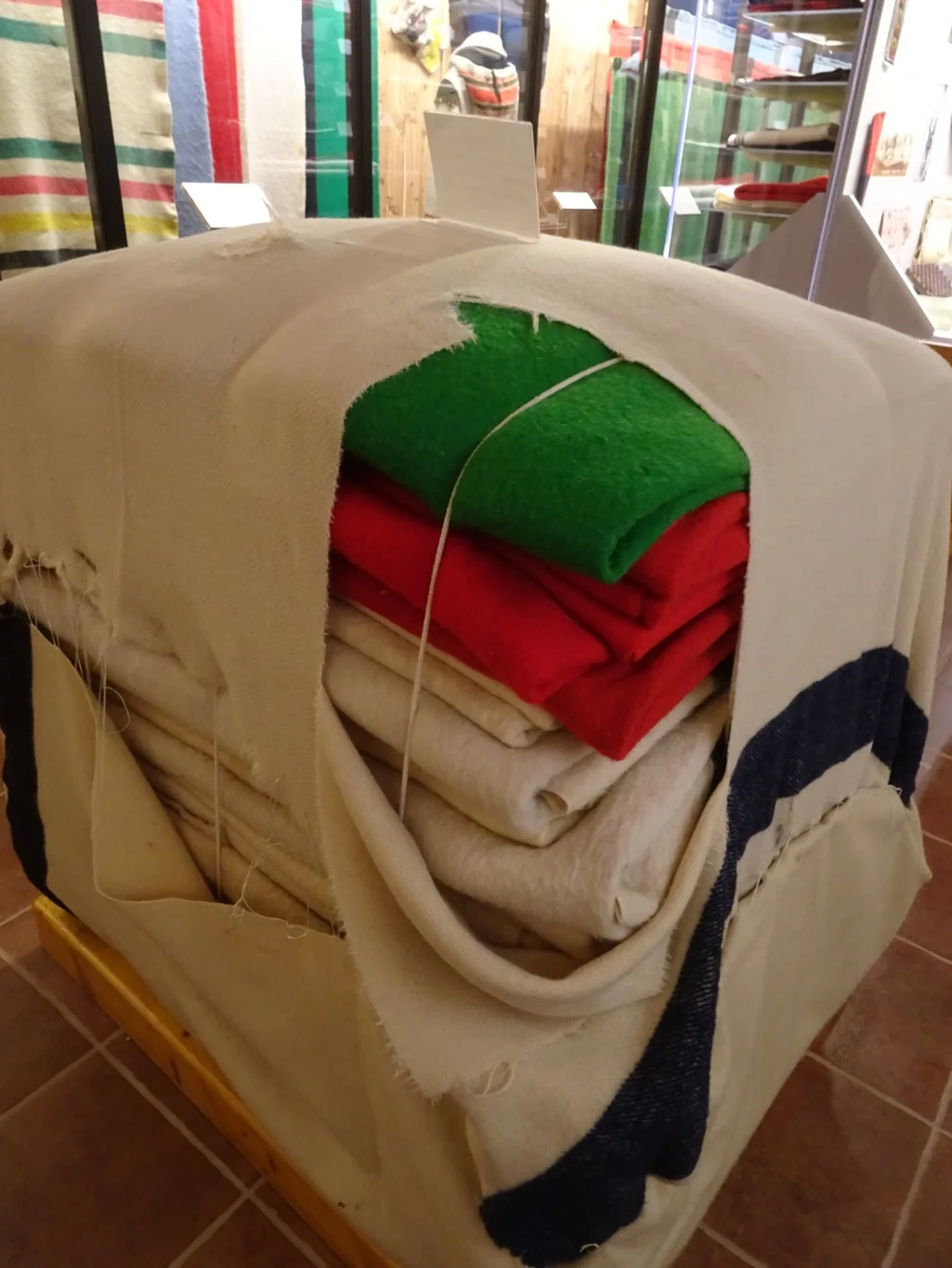 It didn't take long! No sooner had I gone beyond the first displays and found a room with blankets and other textiles which had been traded for the furs the trappers up here had produced, I had found something to pique my interest. Did you spot it in the description above?