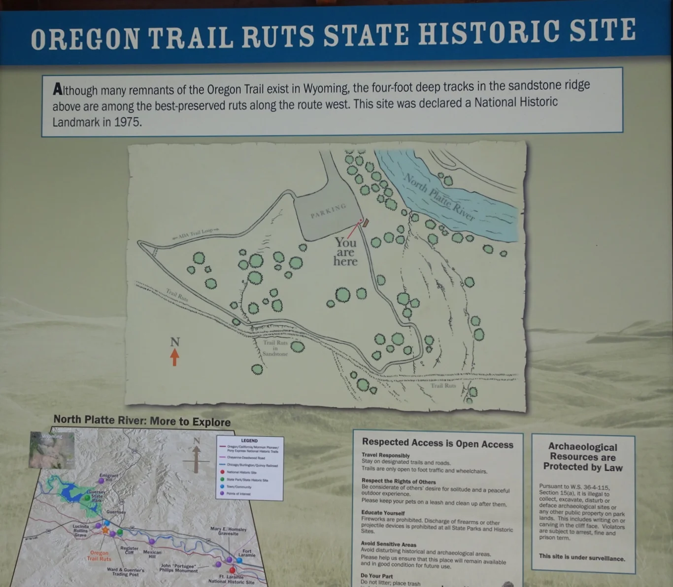 There remained one must-do before we called it a day as we turned right onto the US26 and rejoined the Oregon Trail. Our destination for the night was to be Guernsey, where there were some ruts. Not any old ruts, but the most spectacular ruts that we'd seen Ray Mears explore on the TV programme that had inspired this amazing trip.