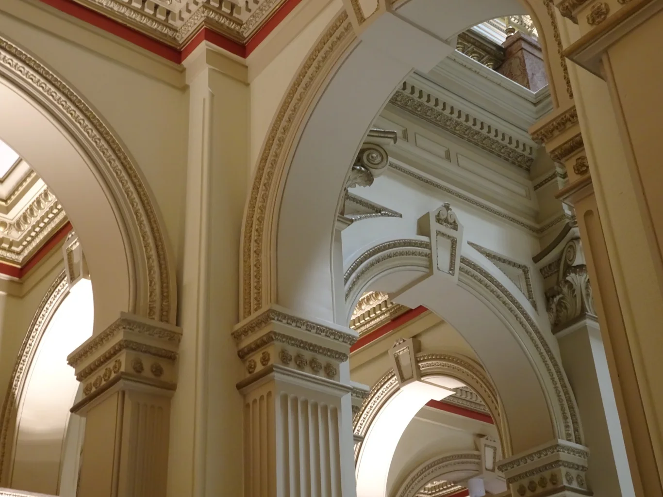 Inside was rather less spectacular. The interior was suitably ornate, but lacked distinction, I thought. There was plenty of brass for the maintenance people to polish but hardly any artwork and not that much to celebrate the state or its people.