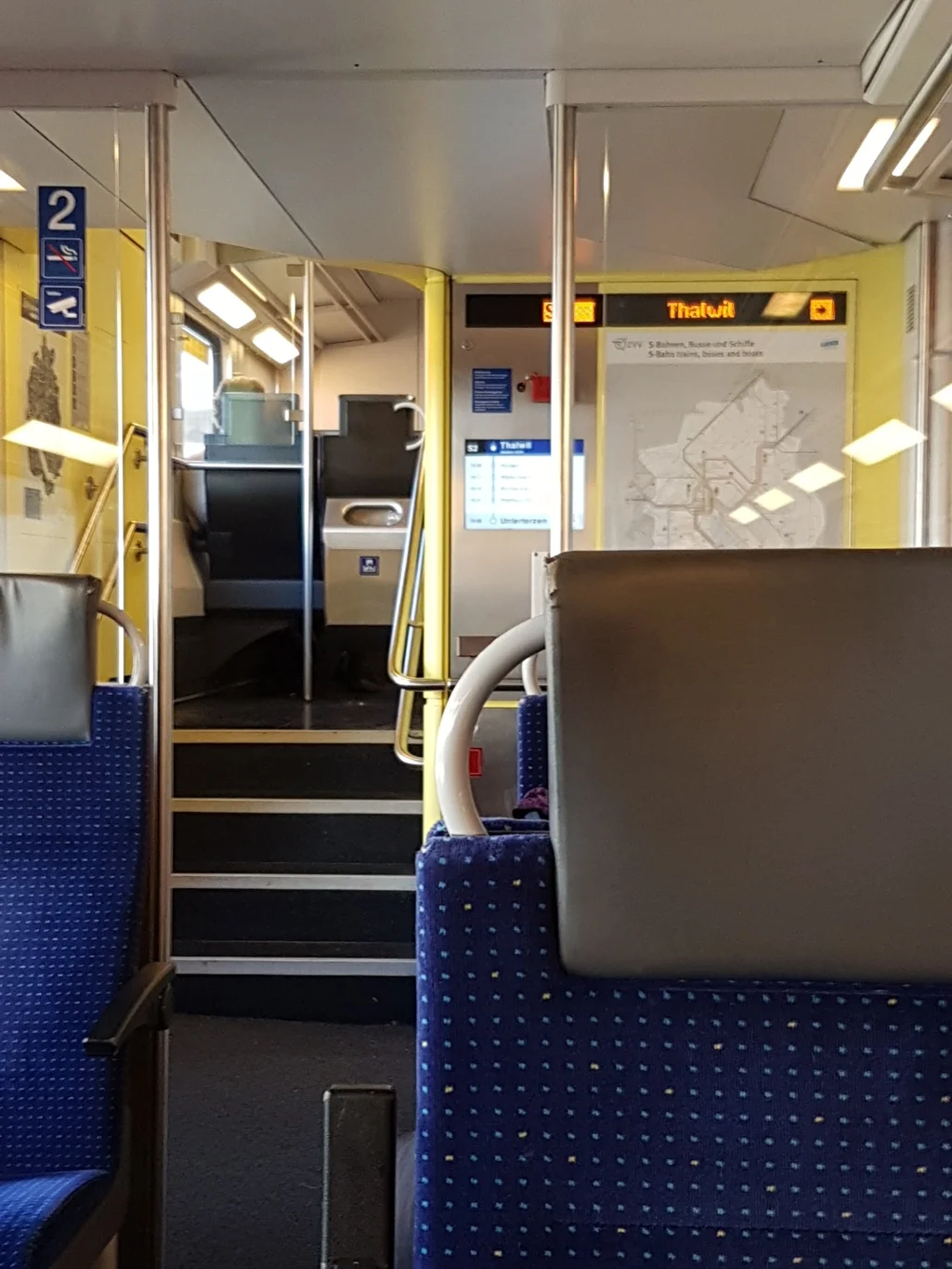 Sitting on the train is a chance to take out my phone and snap a few pictures to share here, though. The modern trains here are almost all double decked, with bright, fresh interiors and efficient information systems. By the door is a clear map of the region, together with a screen showing the train's progess, listing timings for the upcoming stations.