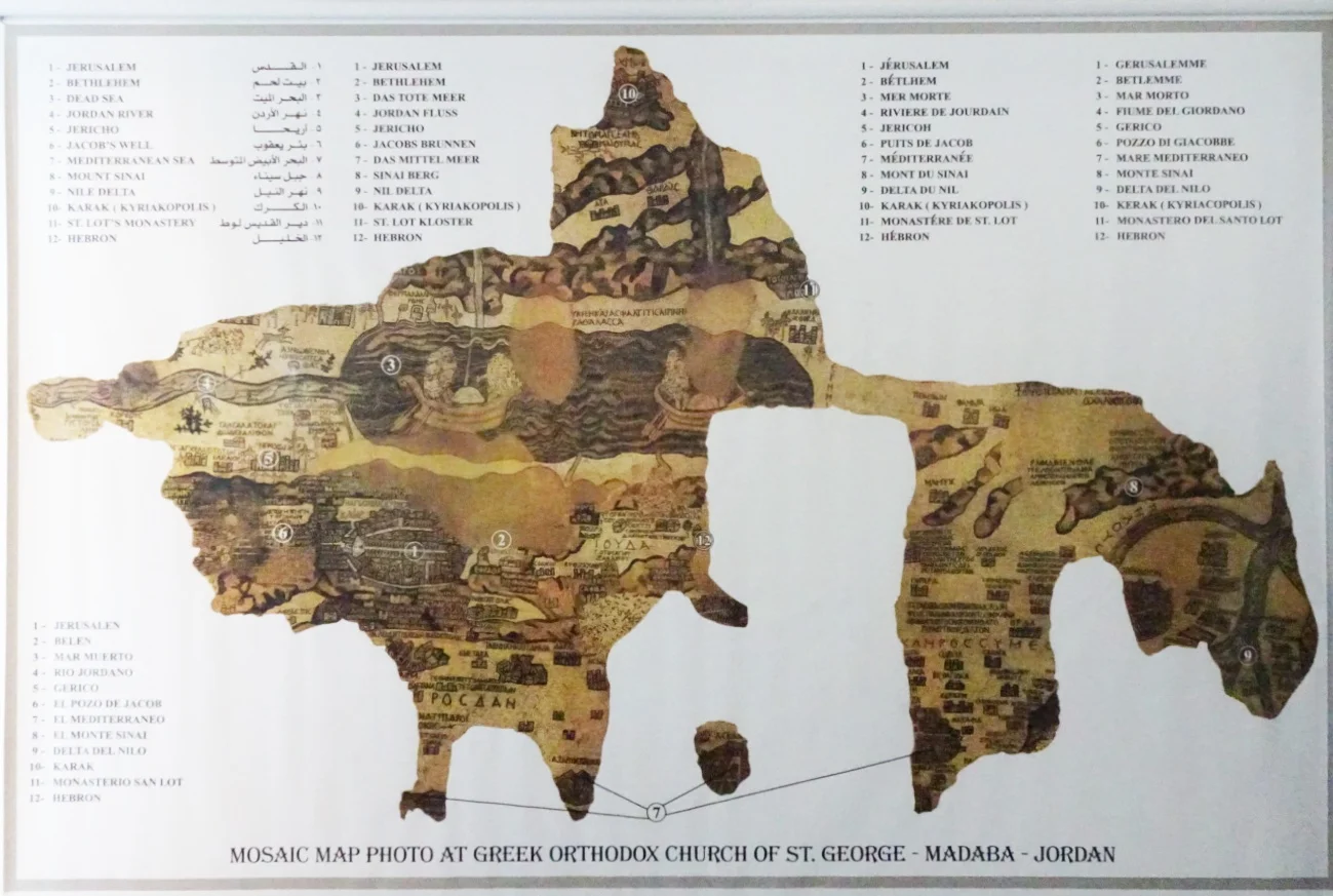 The first is the Greek Orthodox church of St George, otherwise known as the Church of the Map. This part of the world has always featured on the path travelled by pilgrims and in Byzantine times a mosaic map was created to assist them in finding their way to significant sites on their route.