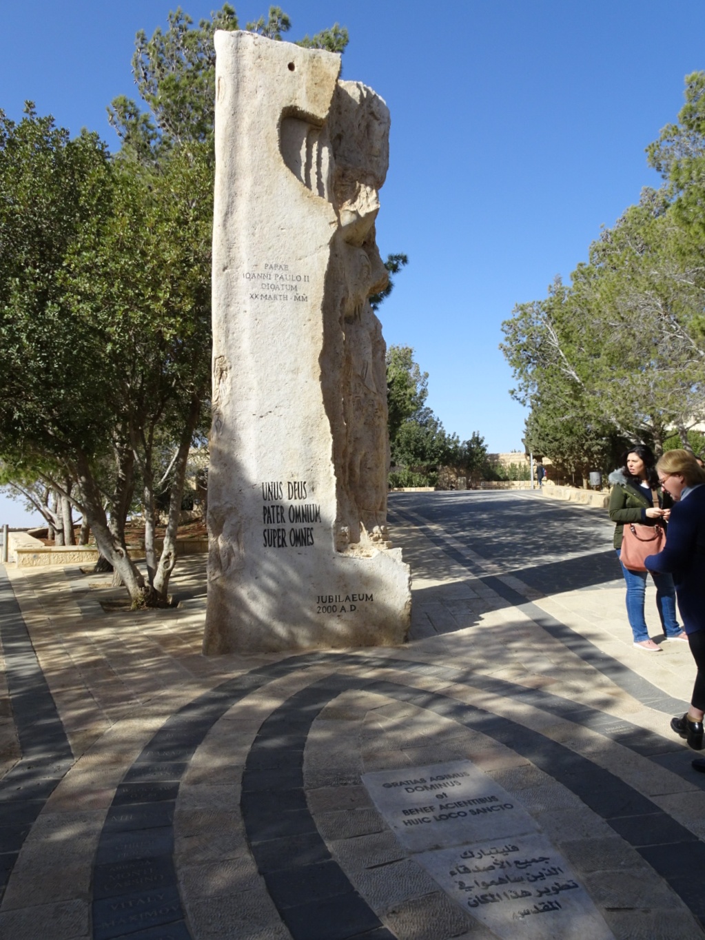 At the gateway to the site, a fine sculpture commemorates the visit to Mount Nebo by Pope John Paul II and a pathway to each side leads to the viewpoint and the memorial church itself.