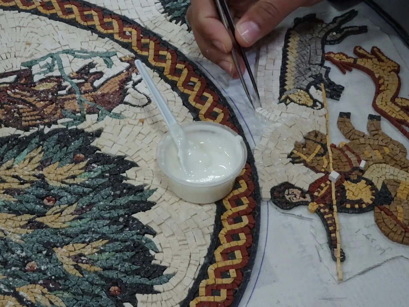 Clearly aimed at the tourist trade, a few artisans were recreating some of the mosaics we’d seen in a more practical format. Yes, their work was painstaking and well executed: firstly, they places tiny shards of coloured rocks onto a piece of cloth following a traced design, adhering each piece with a flour and water paste. Having completed the design - which may take up to a couple of months - the cloth is turned upside down, the design fixed in a grouting medium and the cloth soaked away.