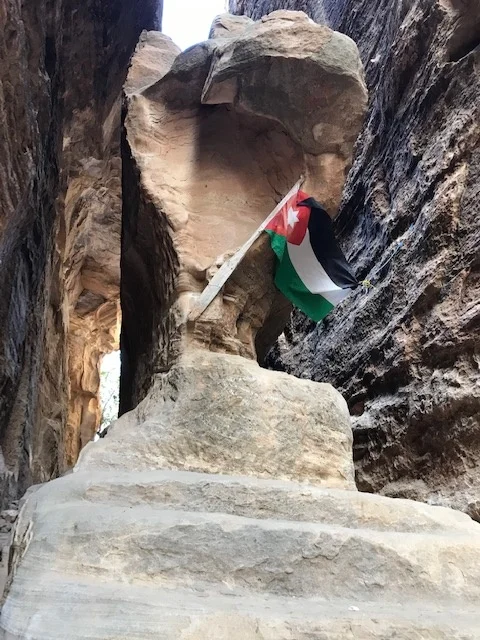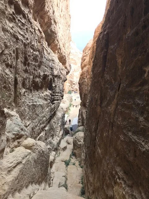 As we poked about the structure on one side of the siq, we heard a voice from the other side call “Hello! Where are you from?” We looked up to see two figures sitting on a ledge high above the ground. We replied “UK” and asked the same of them. One answered “here” and the other “Brazil”. We left them to enjoy their smoke - whatever it was - and I resisted the temptation to tell them to be careful!