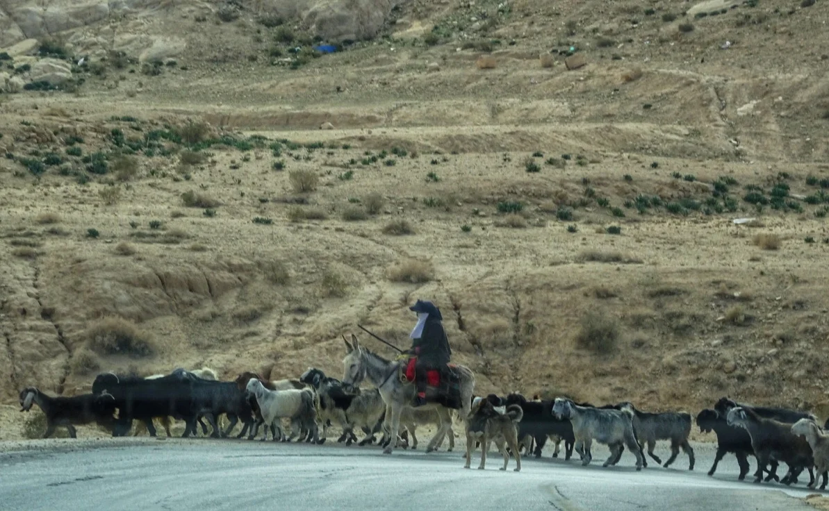 Reunited back at the car, Nabil headed back towards Wadi Mousa, stopping for a while to allow another herd of goats to cross whilst Mo explained the importance of the donkey. He told us how a donkey is always given the strongest billygoat as company. As the billygoat grows and becomes the alpha-male in the herd, it aligns with the donkey rather than the other goats making it easier to keep the herd together.