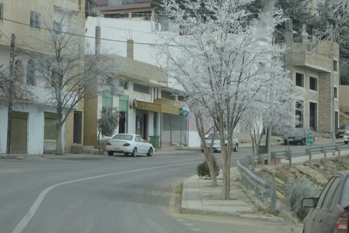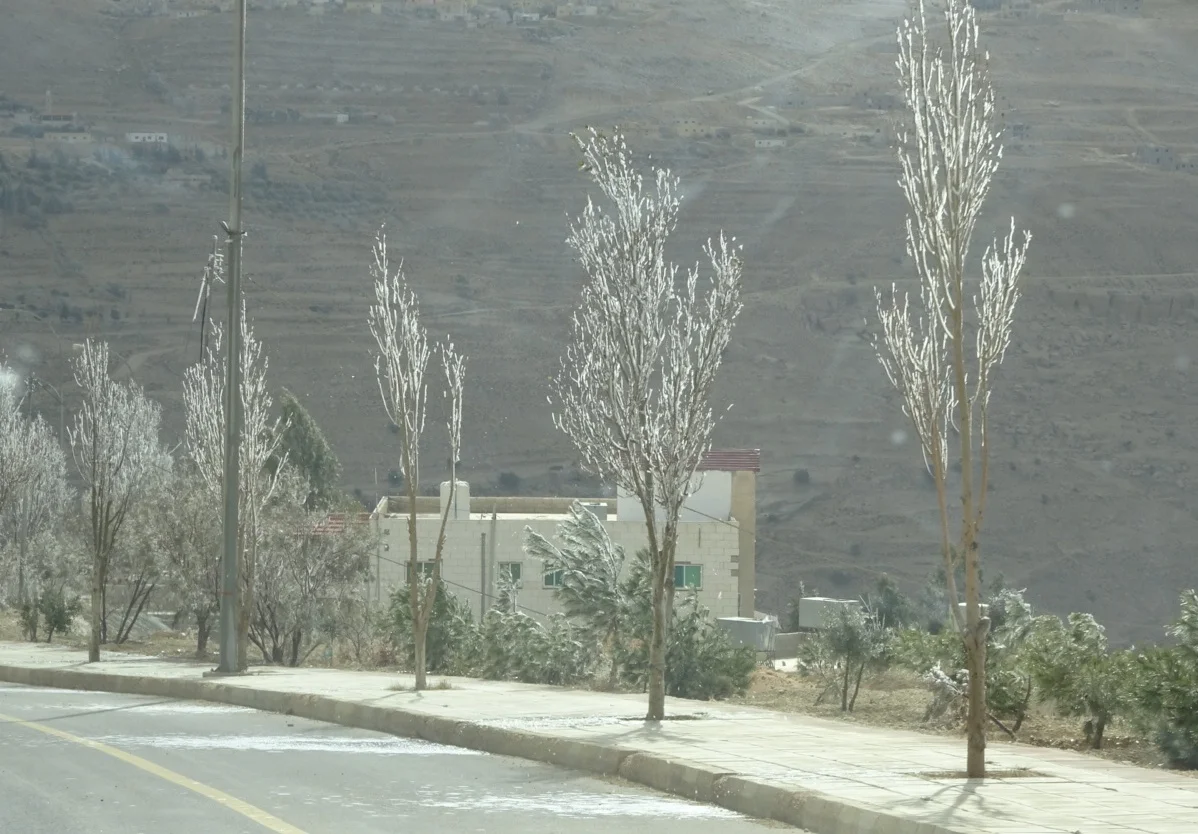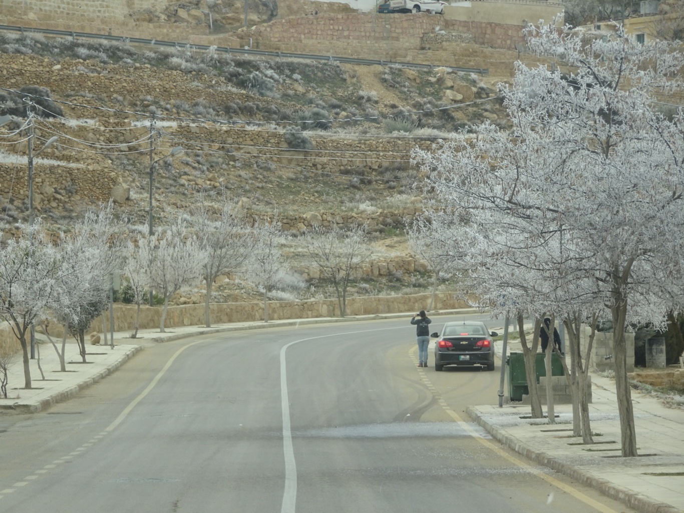 As we drove, we heard the hardf frost from the trees blowing onto the roof, but this was nothing - Mo’s wife had sent him a video of the six inches or so of snow that fell in Amman last night.