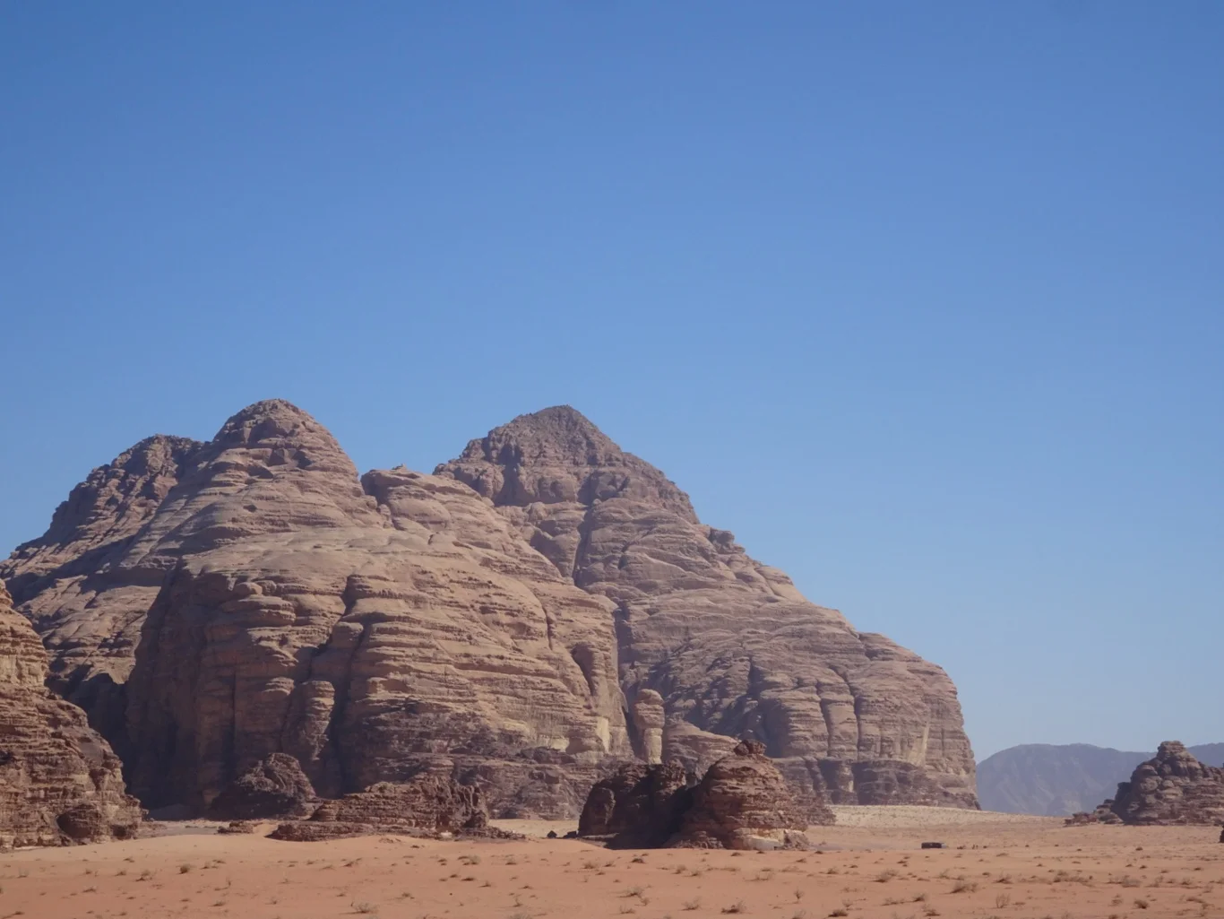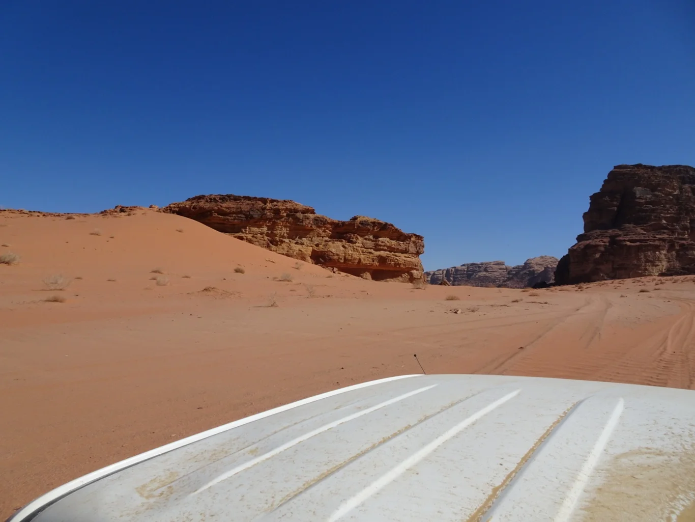 What a glorious day! Soon we were off road and into the desert, passing the rock formation known as the Seven Pillars of Wisdom.