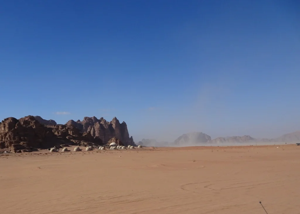 The last stretch of our journey was through a valley filled with small encampments which Mo described as glamping. One of these is the Mars Camp but all looked pretty similar.