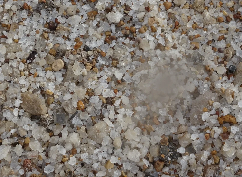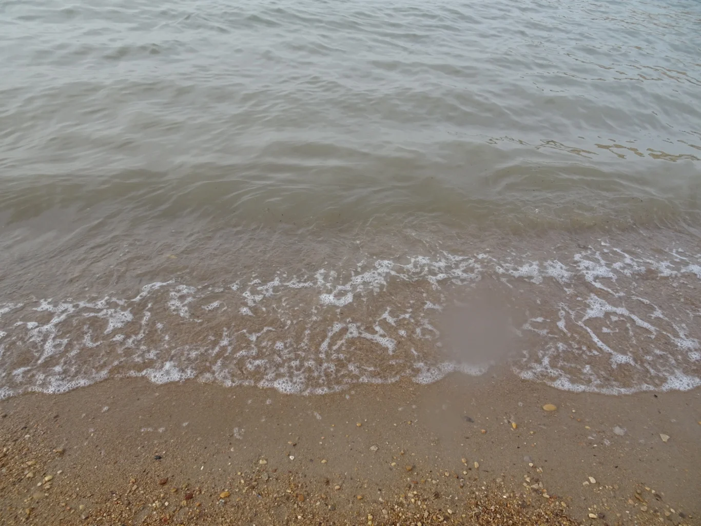 (The photo is of the natural beach alongside the sandy area: salt crystals and small, sharp shingle - I edited out the cigarette end…)