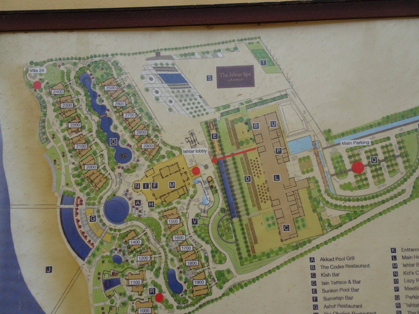 When we arrived, I perused the map of the hotel to identify somewhere to have my daily swim. Straight lines, no larking about, just get the goggles and headphones on and do it. I noted the “lap pool” up by the main building and on the first morning we were here, I persuaded my Hero that we needed to explore.