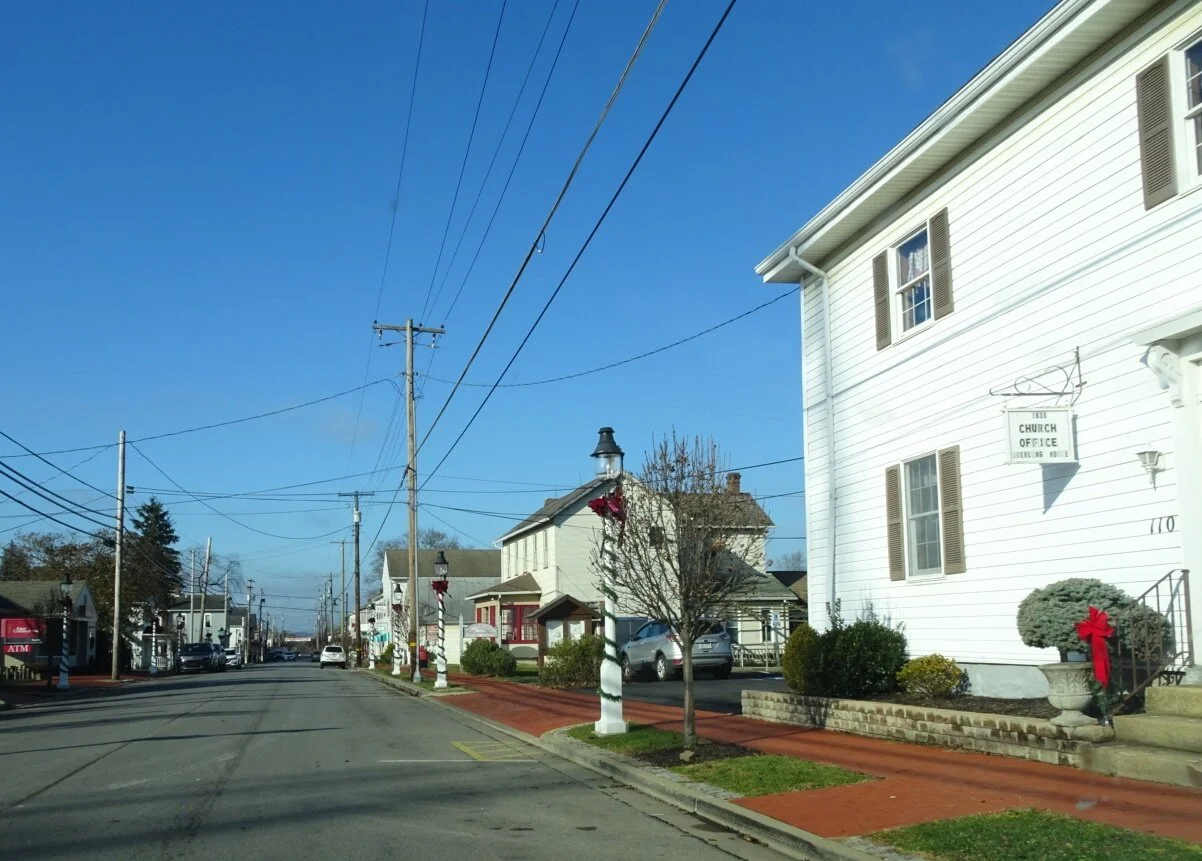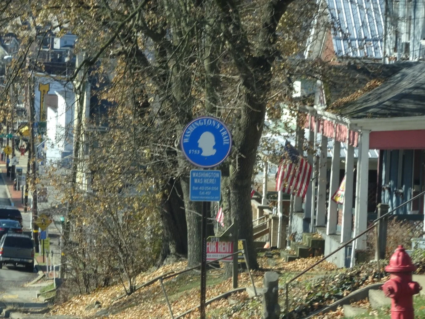 From Butler, we drove through a couple of small towns, each with traditional homes with porches and cute main streets. We noted the signs for “Washington’s Trail 1753” and resolved to find out more about that (see link) since we seemed to be following the same route.