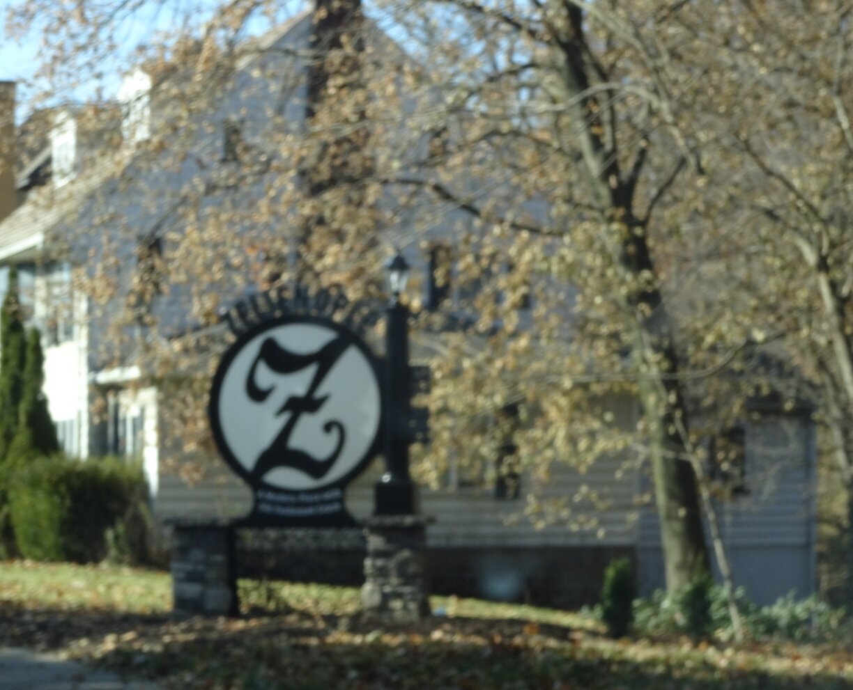 Forgive the blur, please, but no sooner had we left Harmony than we were entering Zelienople and I was keen to catch that Z sign. I had read about the town before we came, so knew that it had been named after a young woman, Zelie. I had pictured her as a bright young thing, so imagine my surprise when I saw her portrait!
