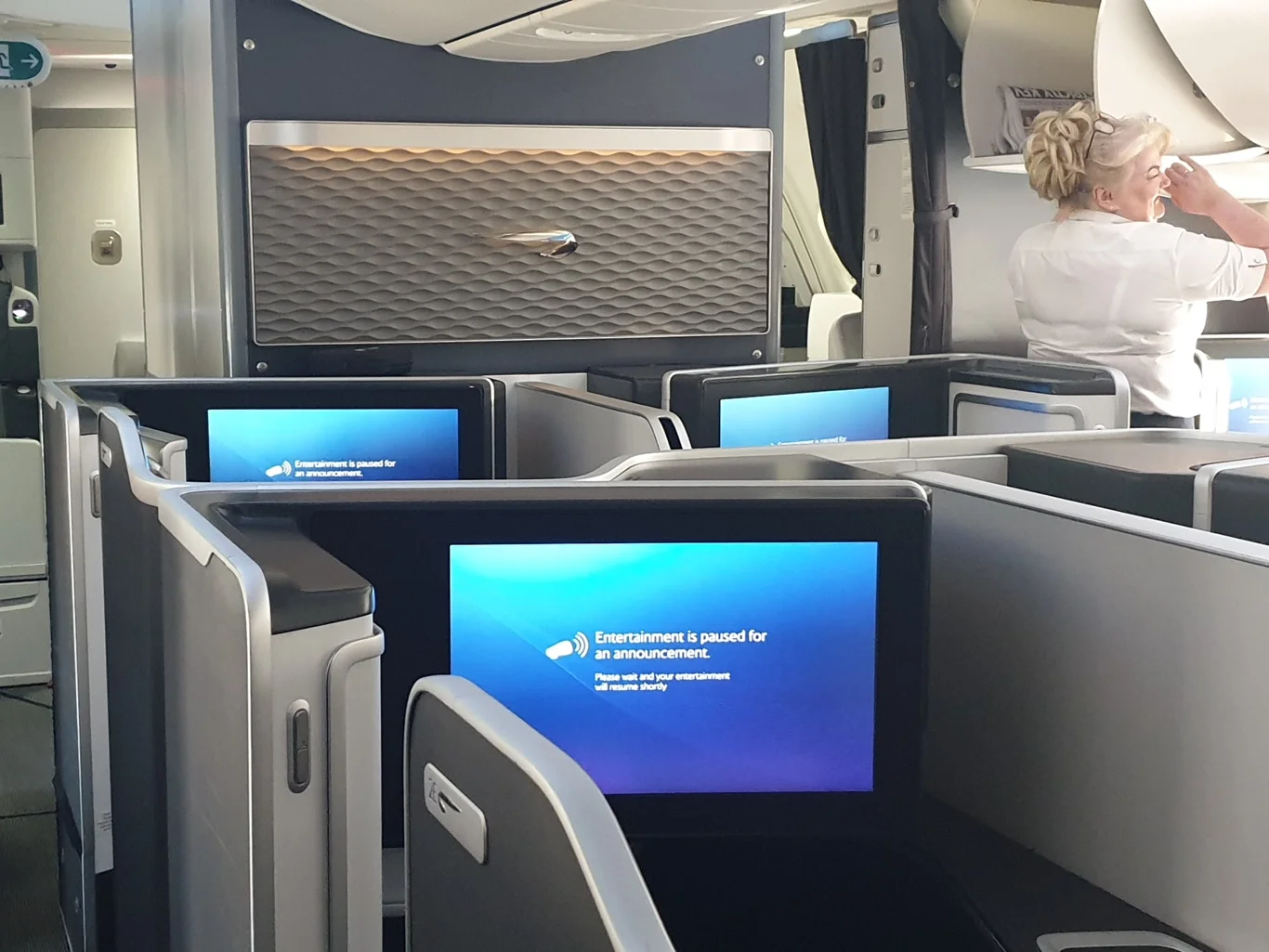 Well, we didn’t have to wait and wonder long, because the Captain came over the loudspeaker to explain what had happened. It seems as though he had been unable to get assurance he needed that the cabin was secure for landing, because a passenger was still using one of the washrooms! As a result, we had an additional go-around, using who knows how much extra fuel too. We were left wondering what fool disregards all the warnings that we’ll be landing shortly and things need to be sorted!