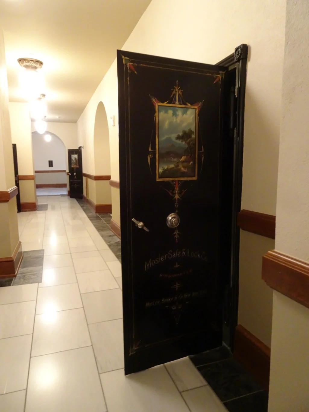 Though the portraits of the Governors were already hanging in one of the corridors, there’s more art still to hang and this is still a work in progress. We nearly missed one rather lovely feature though - the vault doors, where someone discovered some beautiful hand painted decoration on each one.