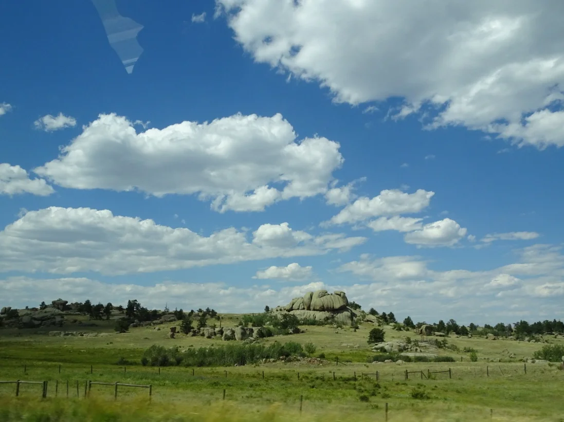 Soon, those grasslands we’d been driving through became dotted with rocky outcrops. They are a really distinctive feature of this part of Colorado and I couldn’t resist putting down my knitting to take a few photos.