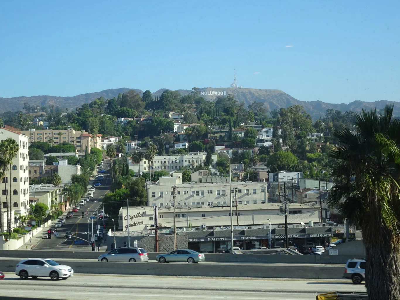 Our last morning here, opening the curtains to the view of the Hollywood sign and the freeway beneath our window.