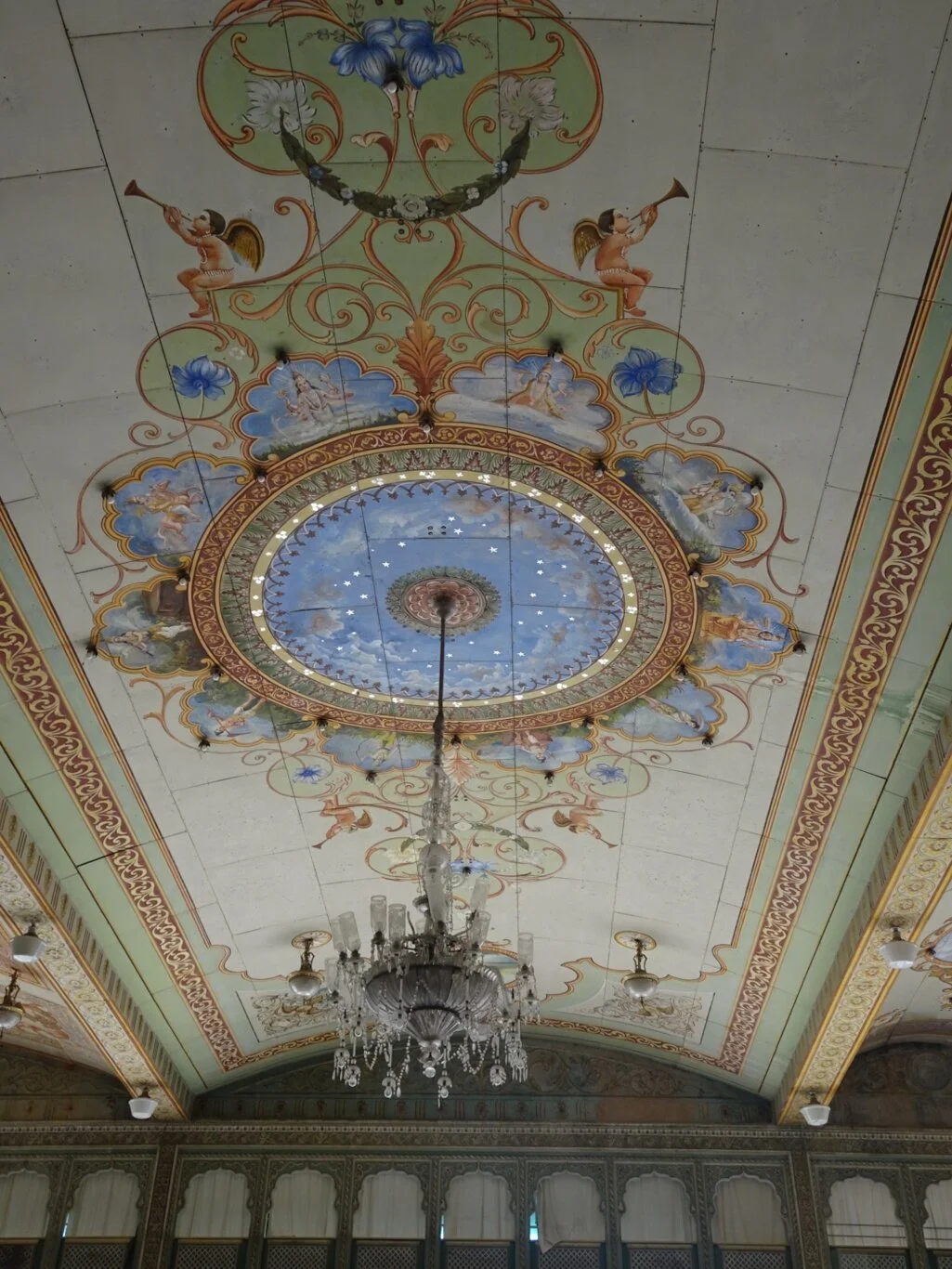 It’s only to be expected that the Private Durbar would be more lavish! I have to admire the mind which chooses the turquoise blue-green for the pillars but who also puts a yellow glass ceiling in there too.