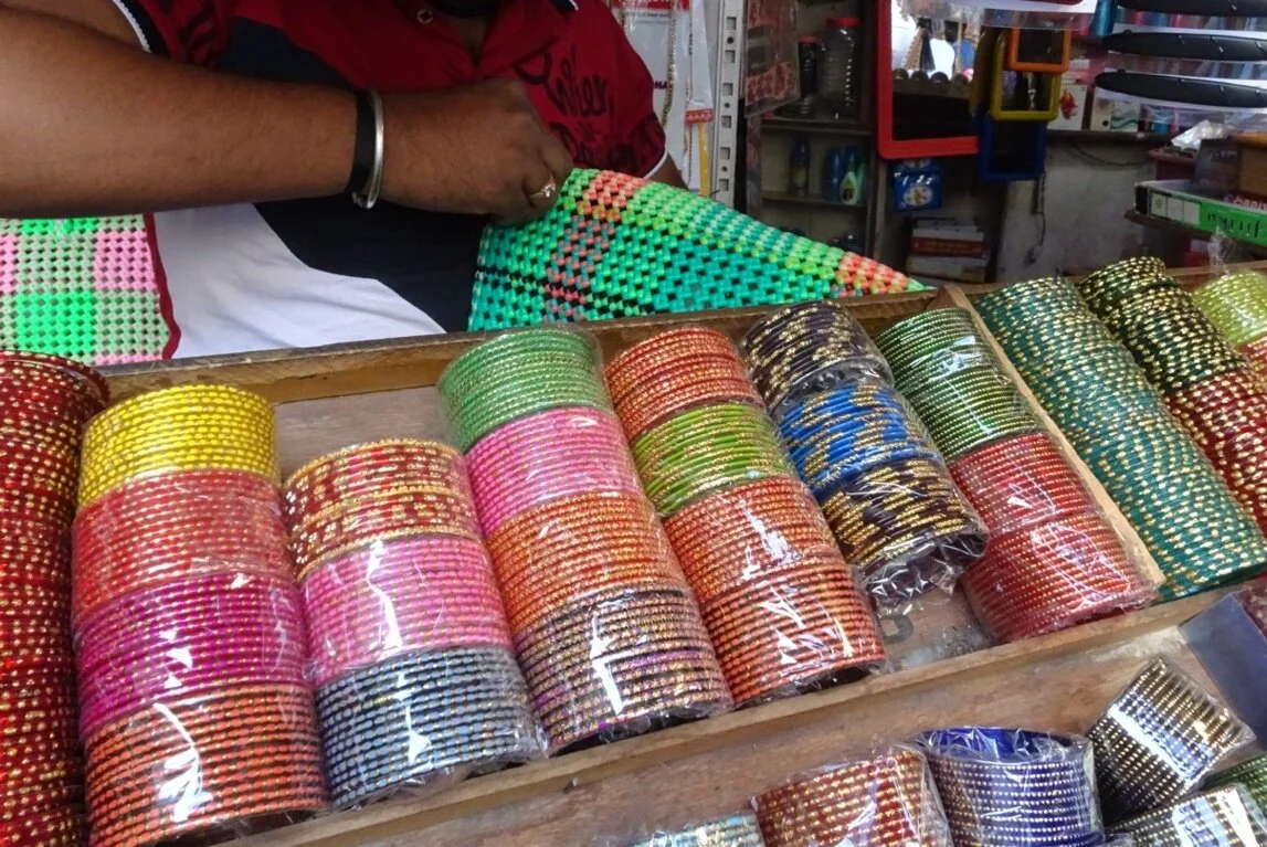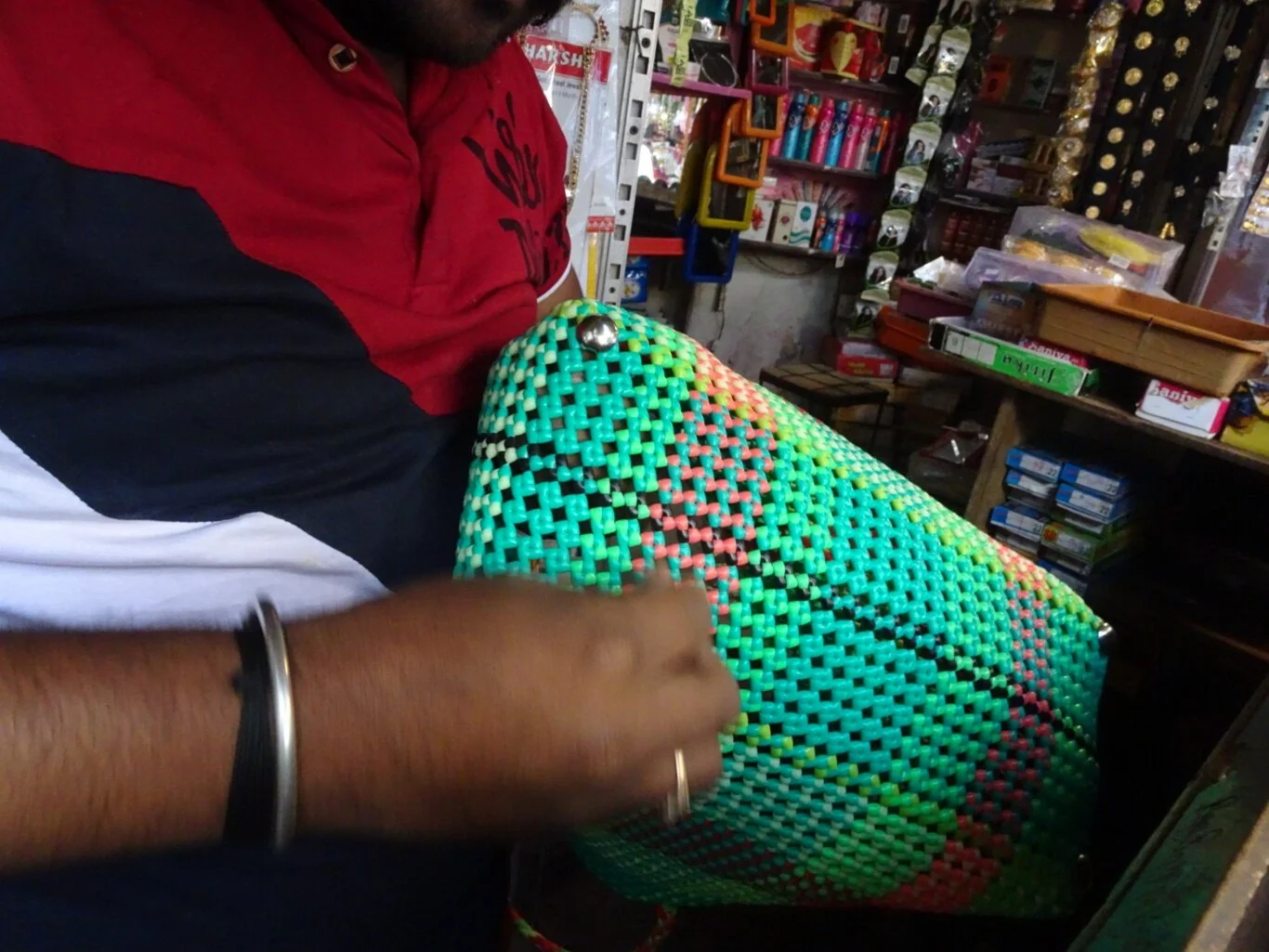 My eye fell on one of the bags - a green one, natually - and Nagendra did the deal. Not only did he get a gret price, he insisted the chap fix metal studs to the base too. Later, when he spotted there were just four studs on the base, he returned the bag to have the chap fit another two in the centre, as agreed! (I realise I am a mere amateur when it comes to doing such transactions!)