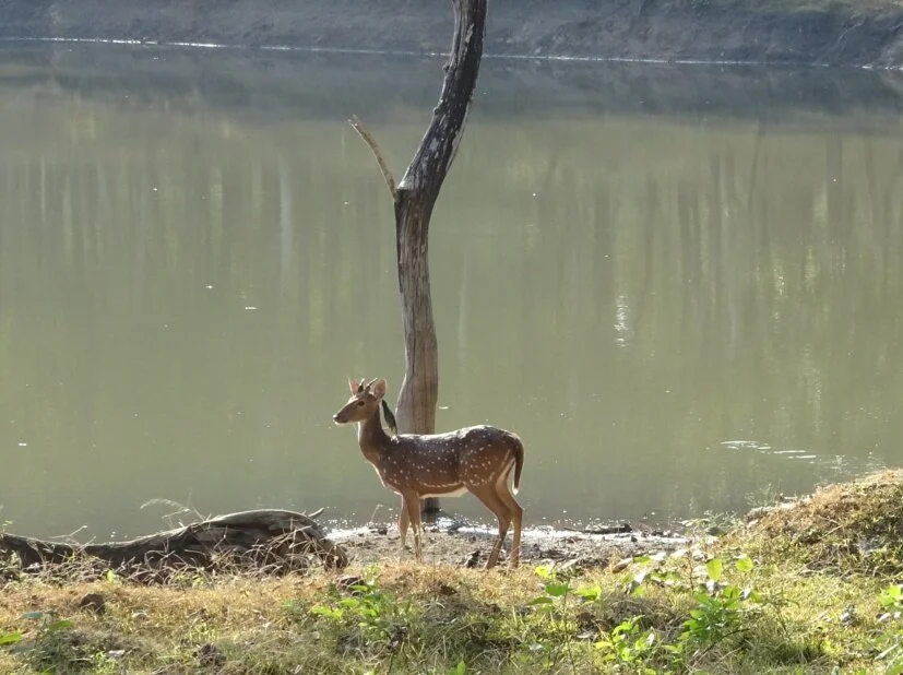 In addition to the monkeys, the other most frequently seen creature was the deer. Several different types of deer, many of which had a bird on their back like this one.