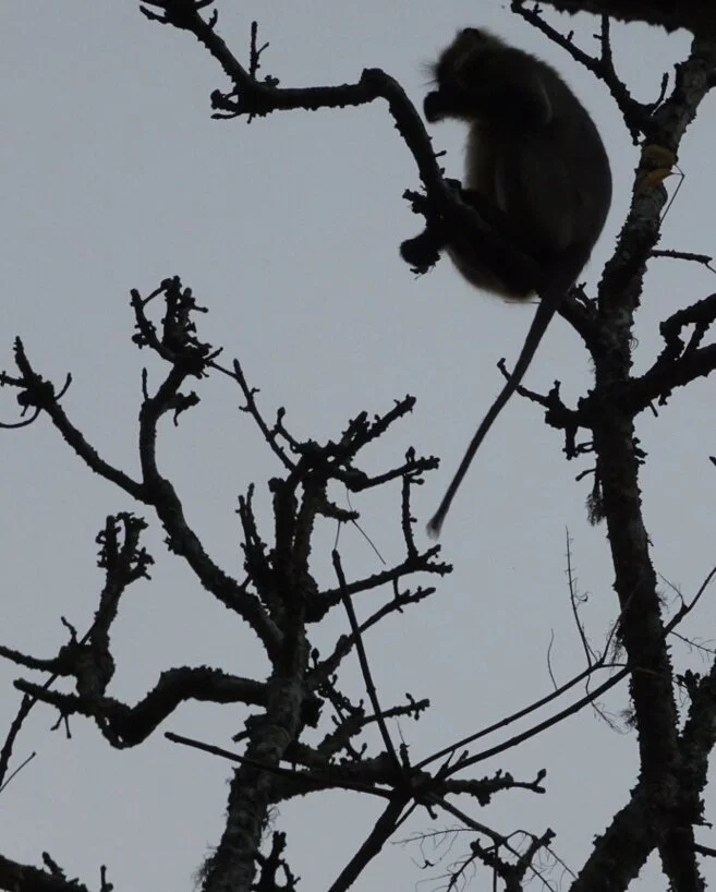 Our driver and naturalist guide did their best. We skittered off the beaten track to a side track to a more open space where there might be sloth bears. Sloth Bears!!! Now you’re talking! But there weren’t any to be found. We stopped to chat to another group and heard that someone said that a leopard had caught a small monkey and perhaps - perhaps - it would take it up a tree for safe keeping. Maybe if we stopped here and waited, perhaps we might see that?