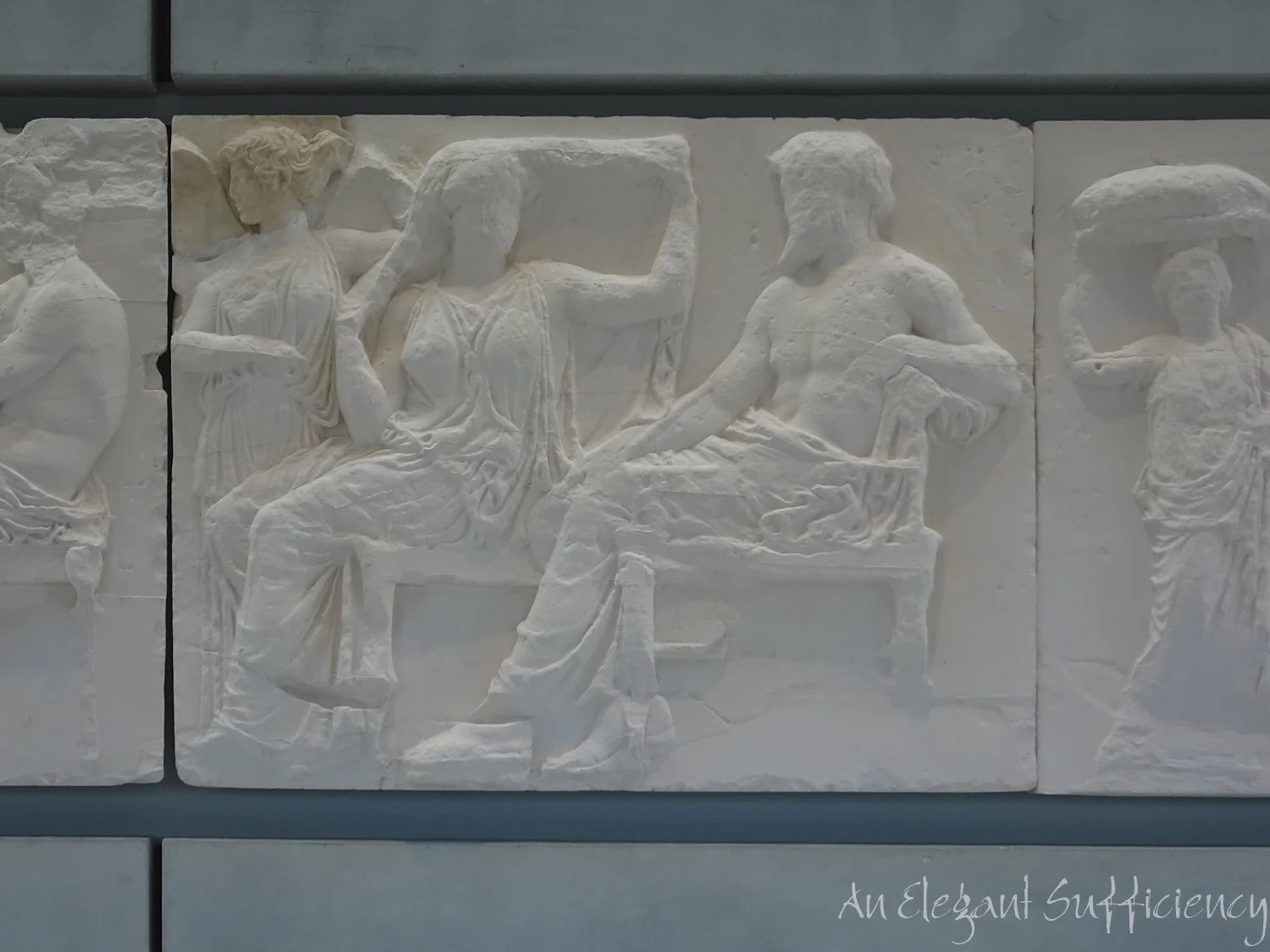 In particular, we appreciated the casual poses of many of the figures - here interpreted as Gods due to the symbolism surrounding them. The only man sitting on a chair - not a stool - is thought to be Zeus and the Goddess alongside him, adjusting her shawl is thought to be Hera.