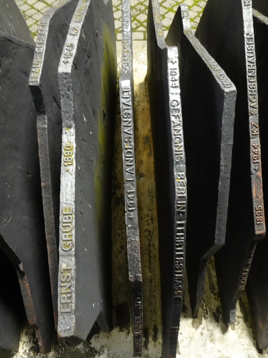 The waiting area was bordered by these vertical shards of ?metal? which on closer inspection had names embossed on the edges. There were probably around fifty shards along this stretch of the fence - I wondered about the significance of the names there. Who was (is?) Ernst Grube?