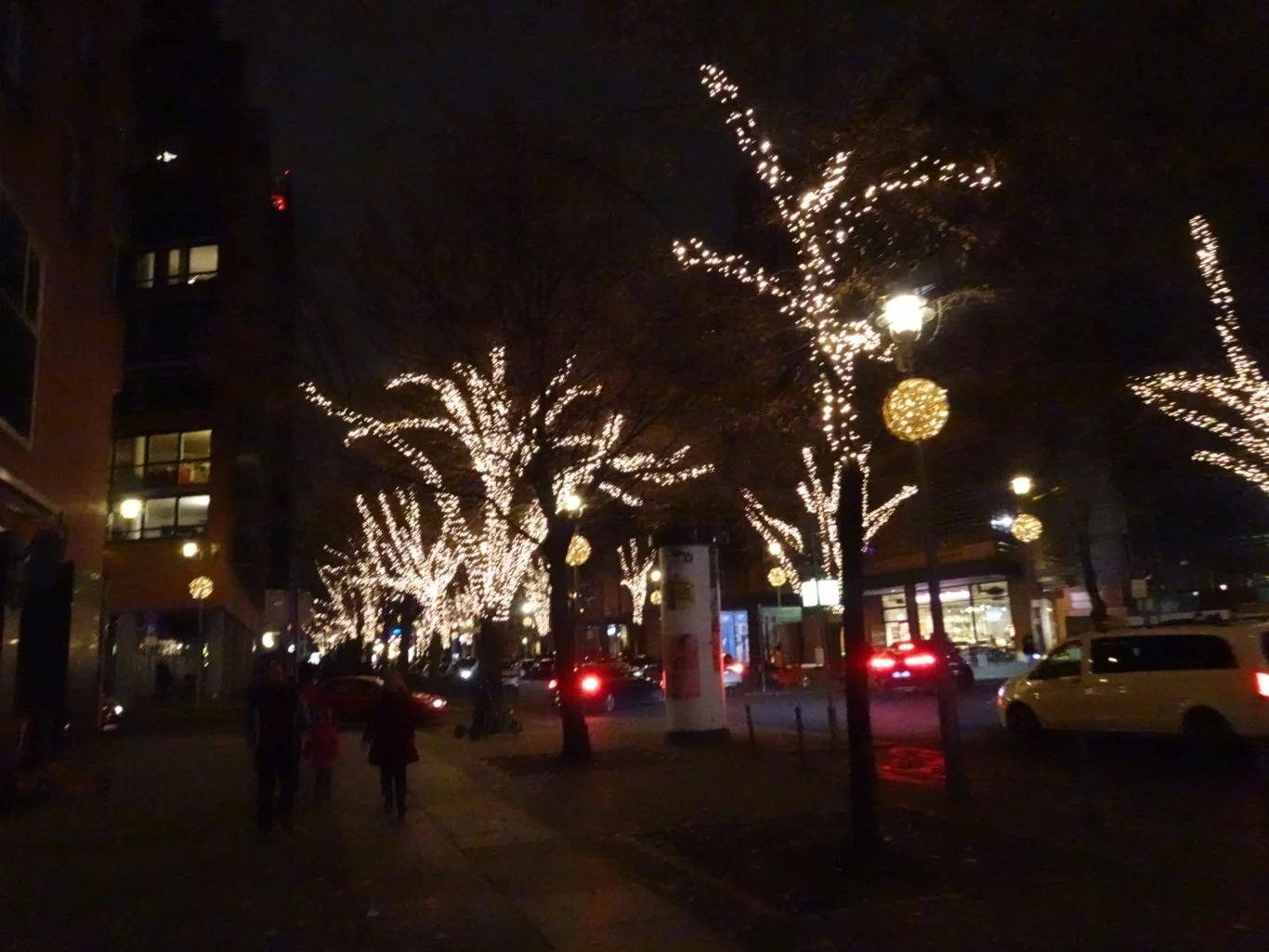 Feeling replete in so many ways, it was back on the S bahn and to our hotel. The Christmas elves had been out with their elevator lifts again this afternoon and the trees were sparkling more than ever.