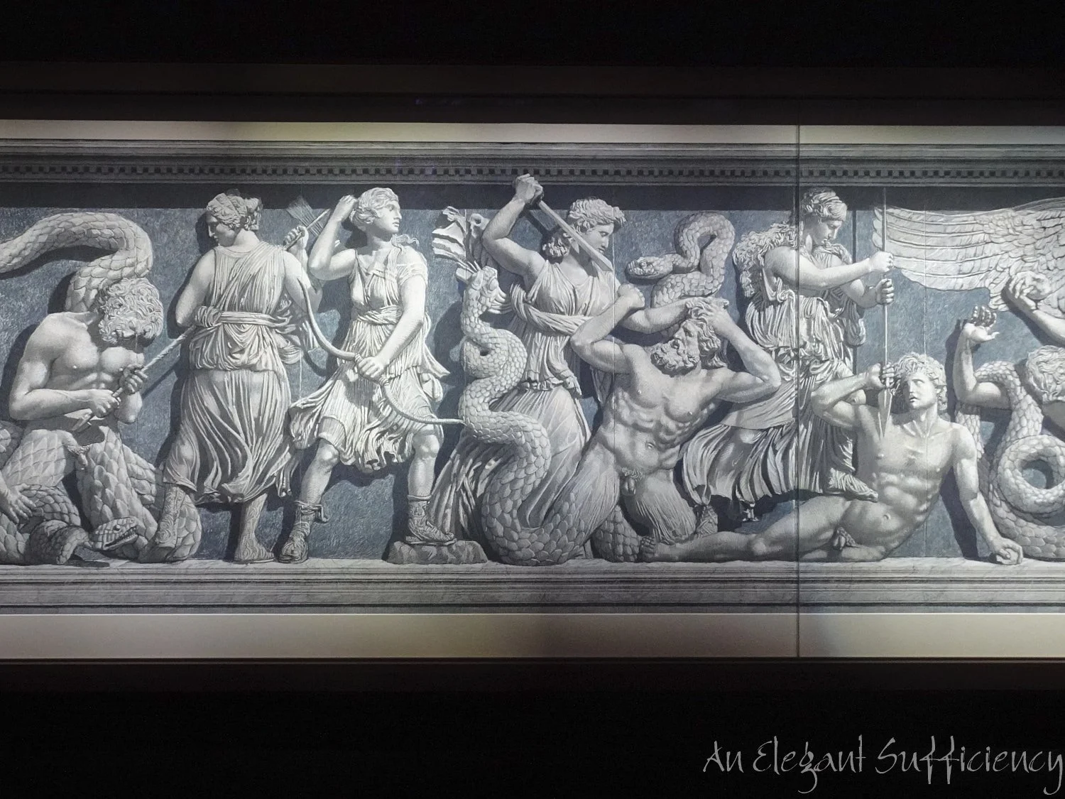 To place these pieces in context, there was a painting of the Pergamon Altar as it would have appeared with groups of figures like these around it. I read that the figures would have been highly coloured and that some traces of the colour were still visible in the folds of fabric. I looked but I couldn’t see any.