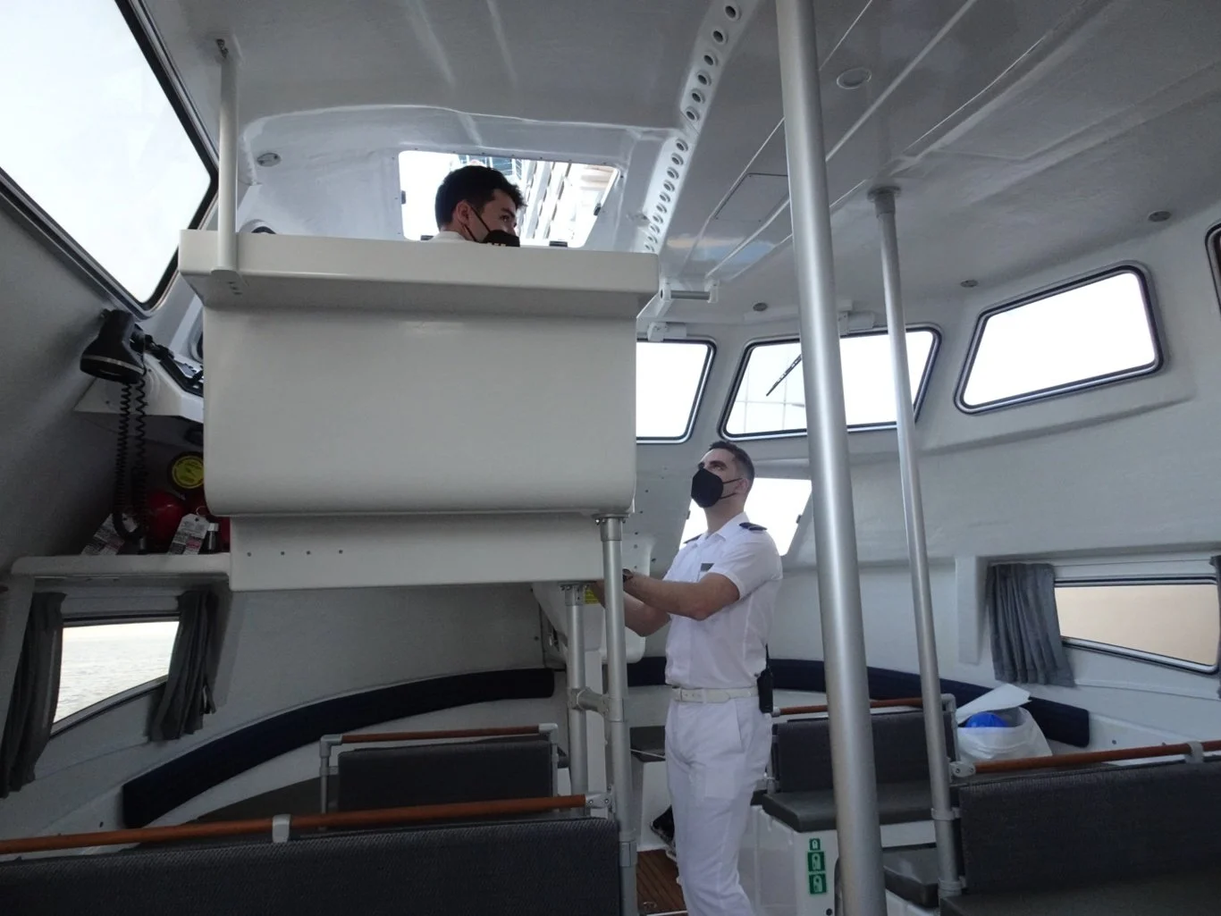 The tenders are often captained by young officers, for whom I imagine this task is rather fun. The tenders are pretty nippy, very manouevrable in the water and they have other seamen to do all the physical work.